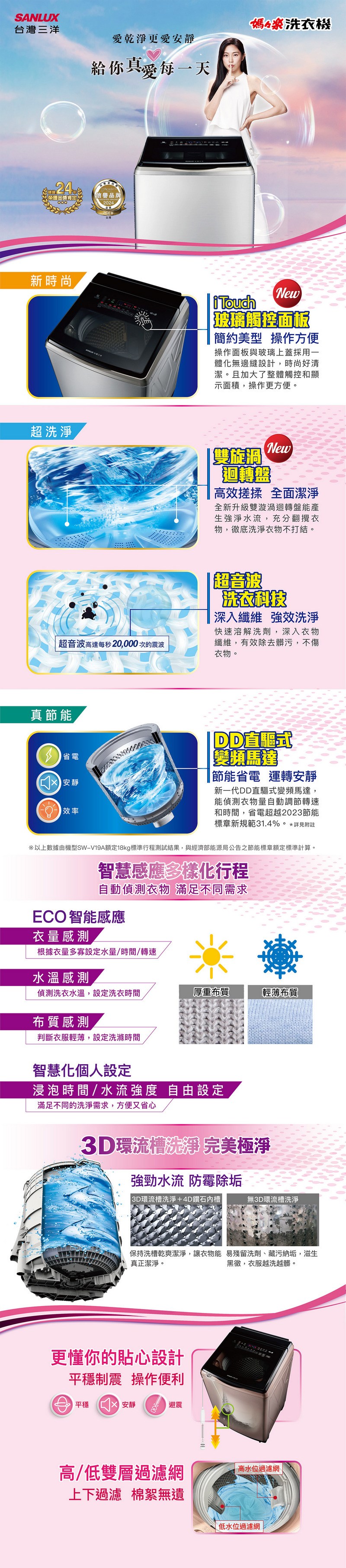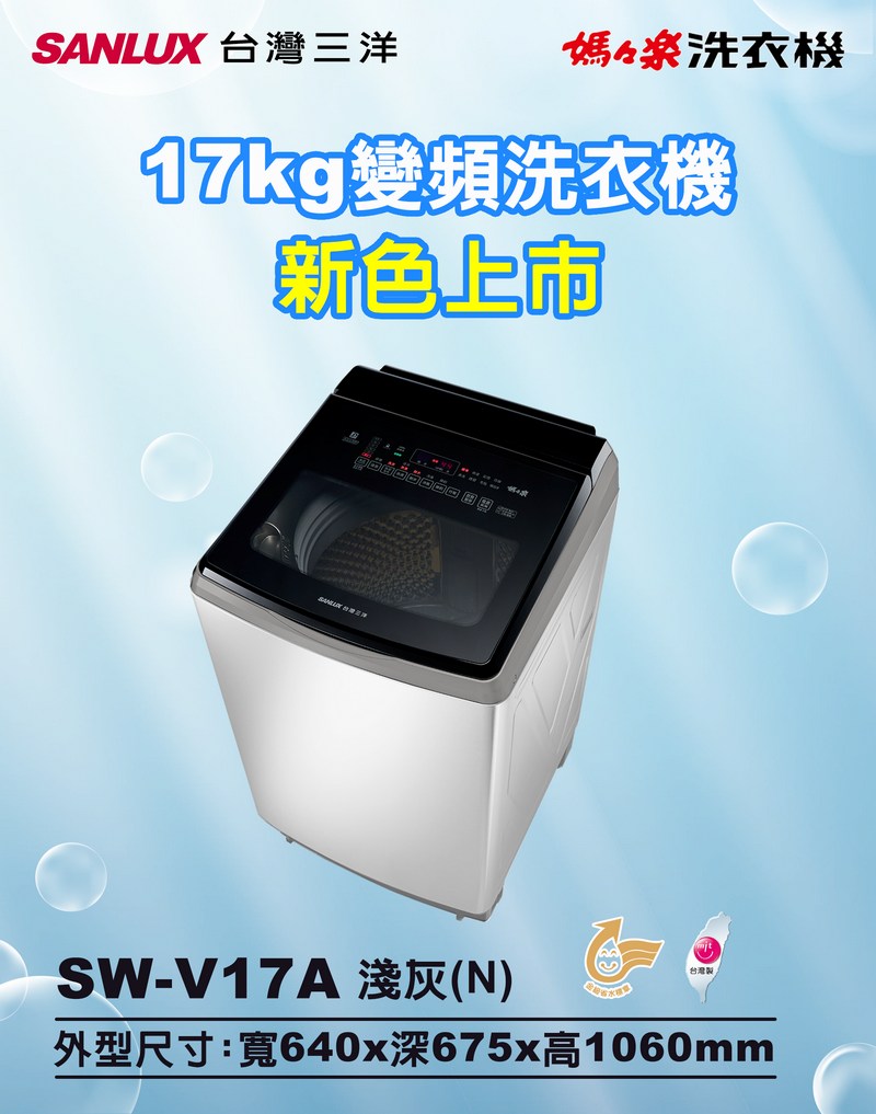 SANLUX台灣三洋17公斤DD直流變頻超音波洗衣機 SW-V17A~含基本安裝+舊機回收