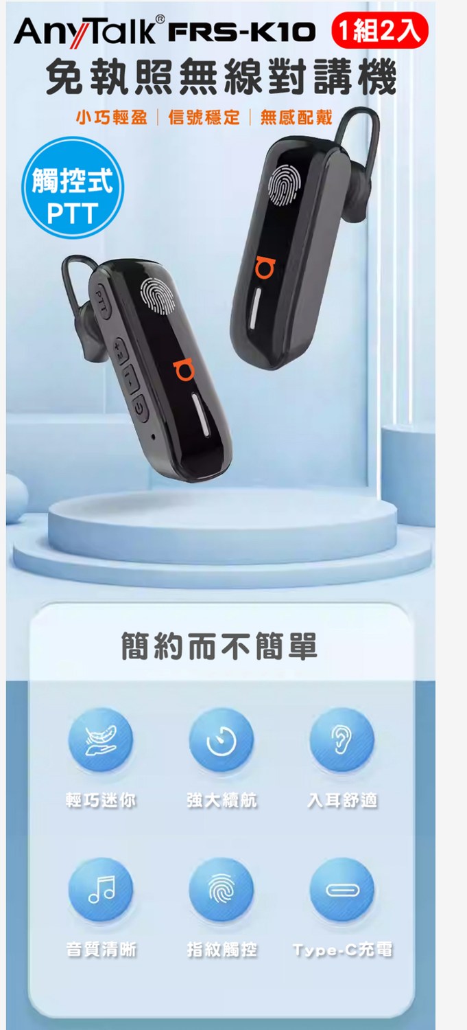 ROWA 樂華 FRS-K10 耳掛式 免執照無線對講機 觸控式PTT