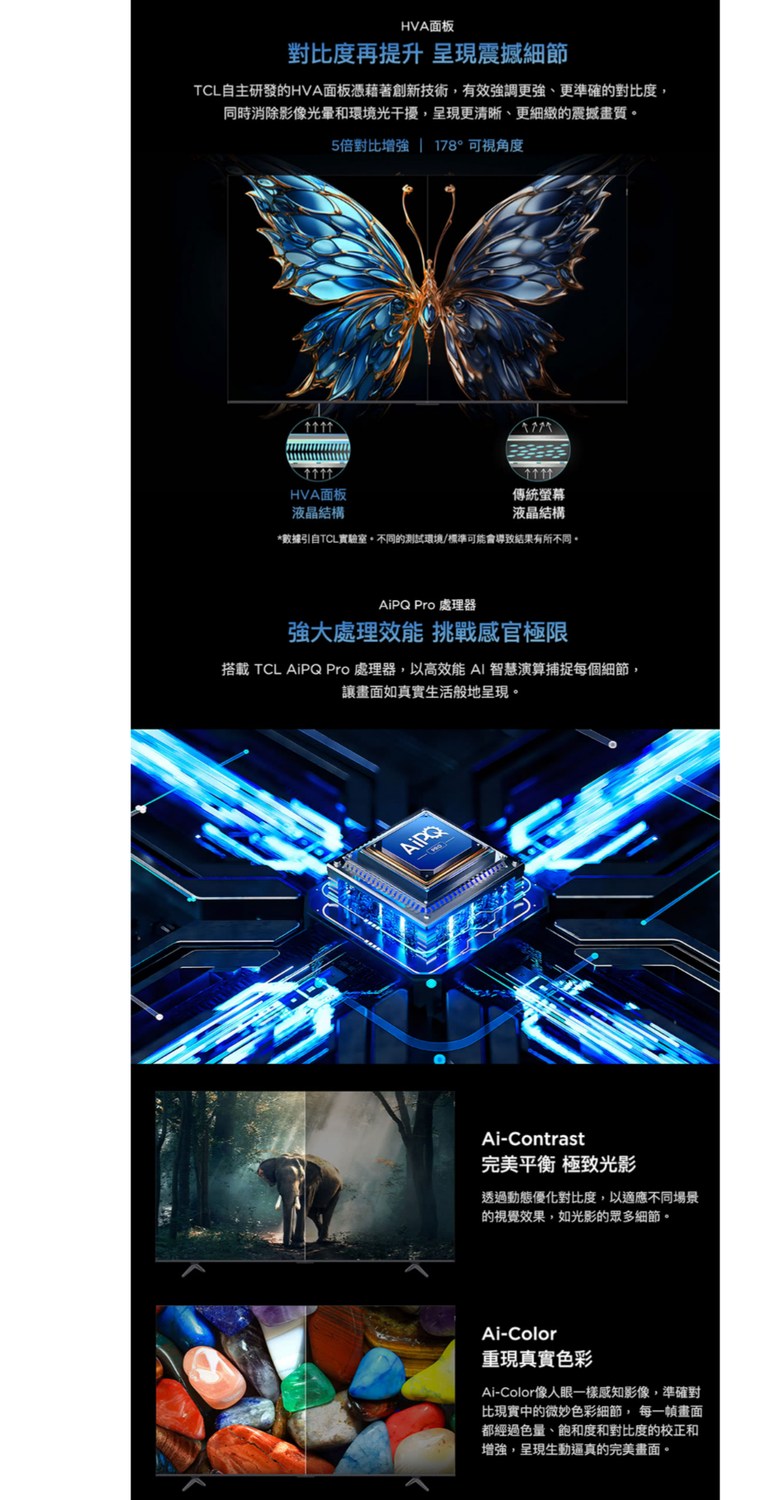 TCL 50吋 T6C QLED Google TV 量子智能連網液晶顯示器(50T6C)+沉浸式電視背光