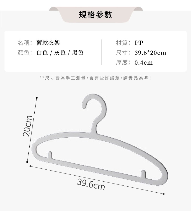 FRANOND 防滑抗拉伸塑膠西裝衣架 灰色 20個