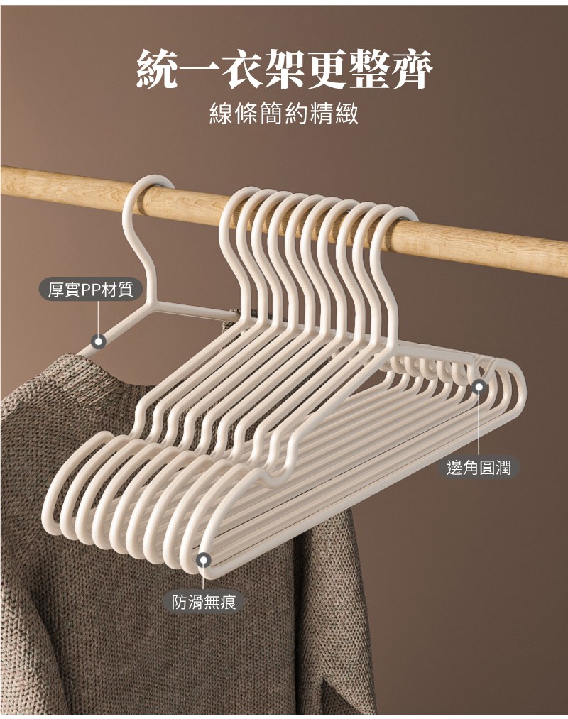 【好氣氛家居】防滑無痕磨砂晾曬衣架50支(晾衣架/三角衣架/掛衣架/吊衣架)無痕白色