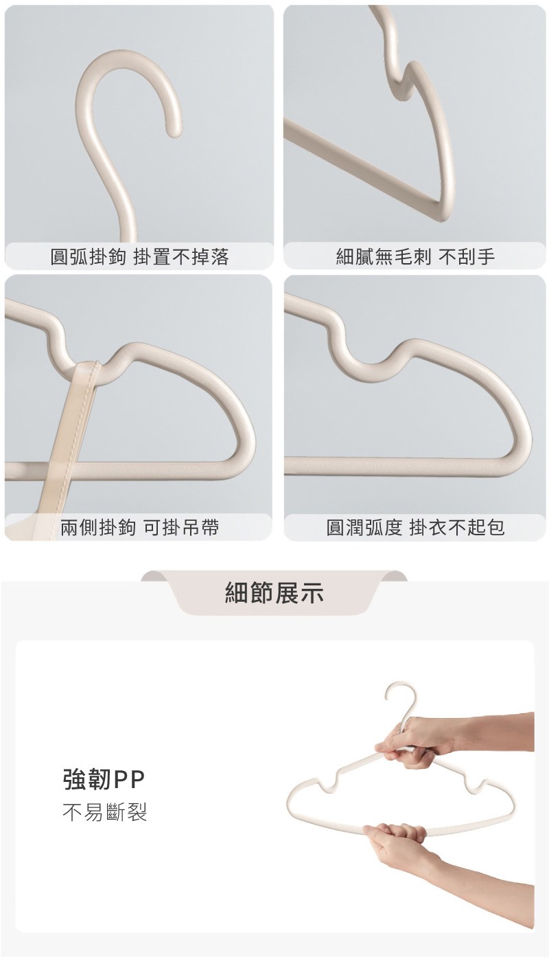 wellane 圓弧仿肩防滑無痕衣架5件組 40cm 1組 白色
