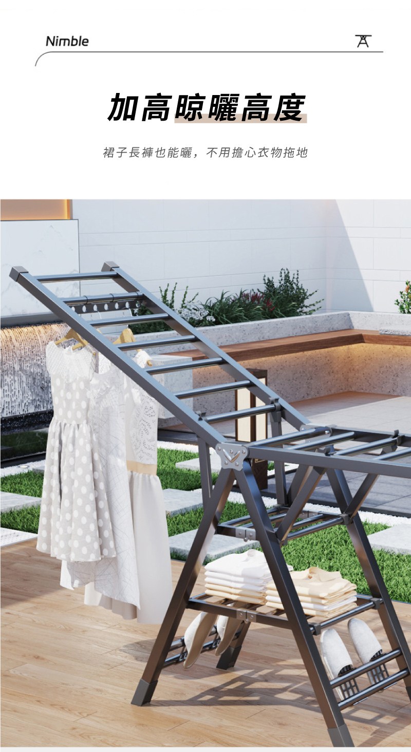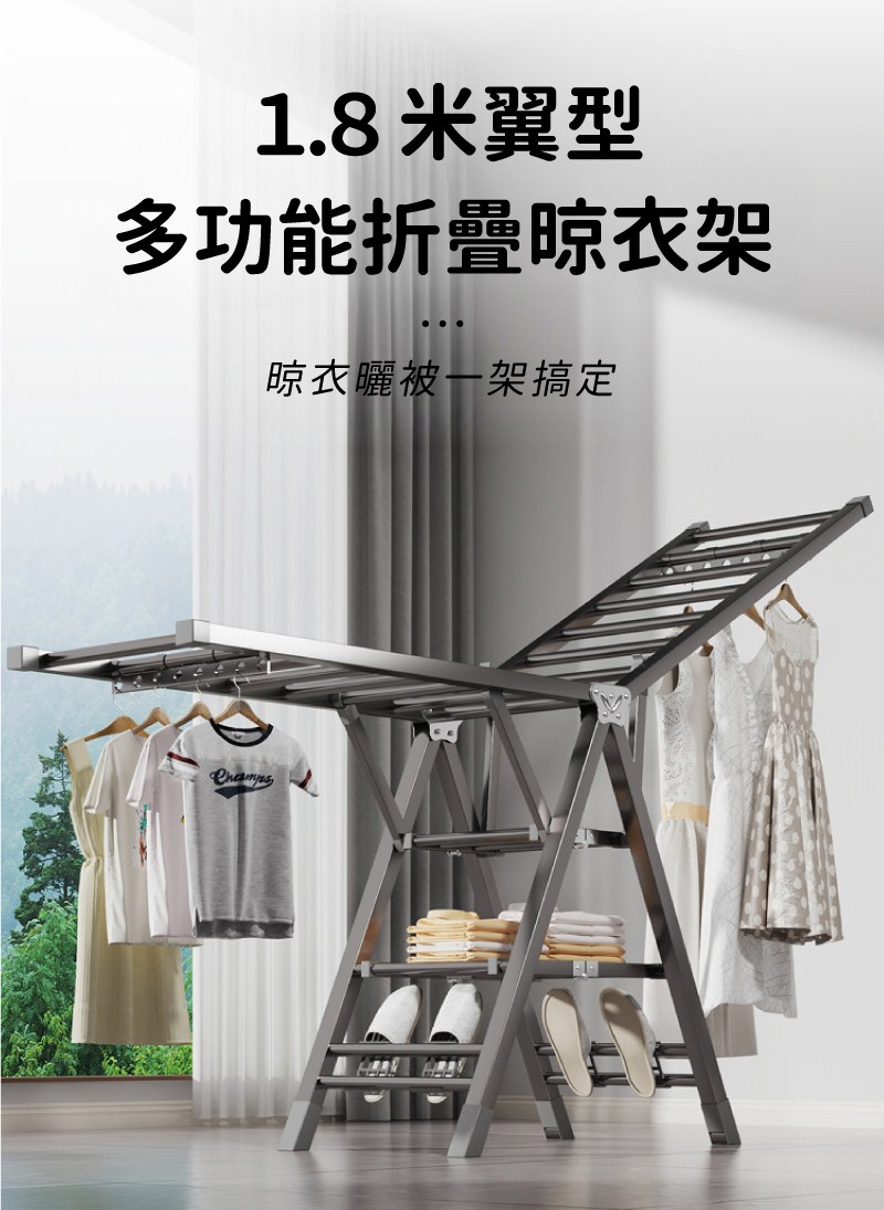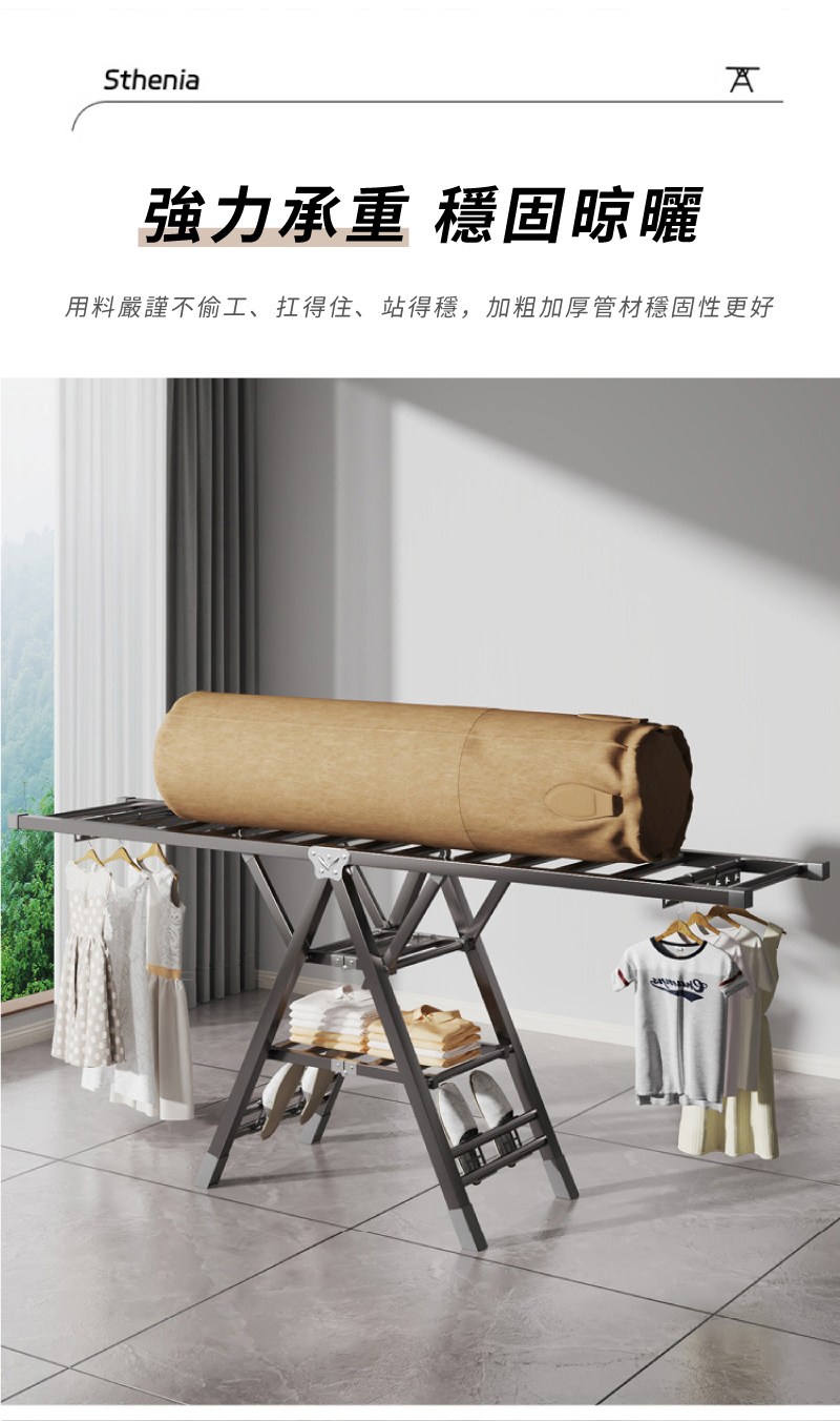 【晴天媽咪】加長2.2M不鏽鋼X型伸縮曬衣架(贈10個防風掛勾)