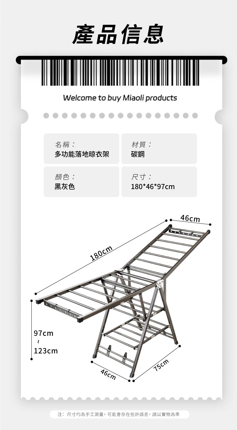 comet 家用簡便折疊式曬衣架 黑色 370 x 420~750 x 1050mm