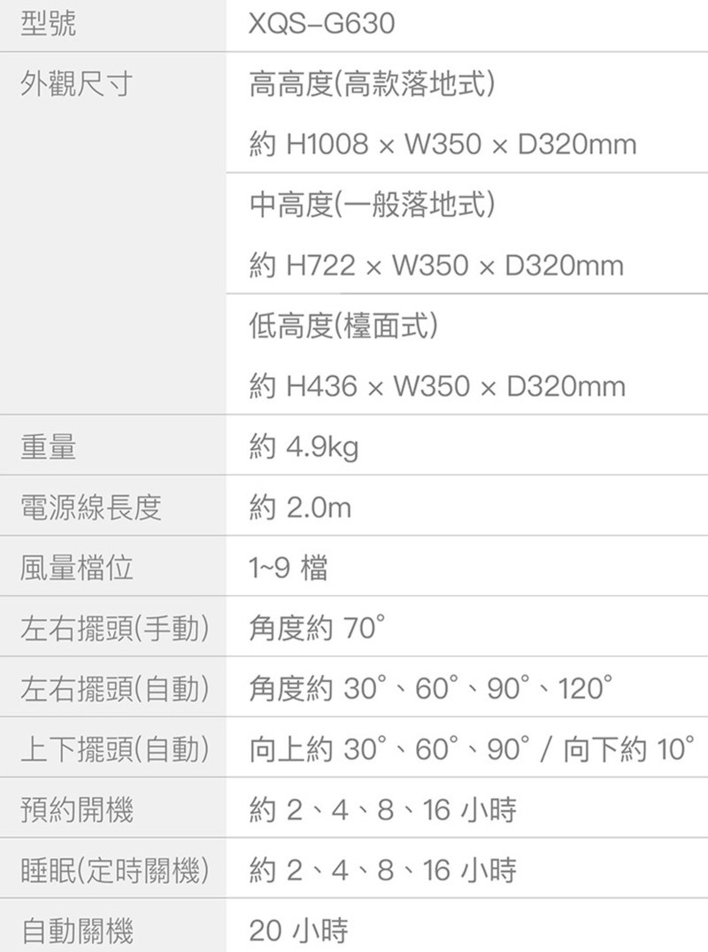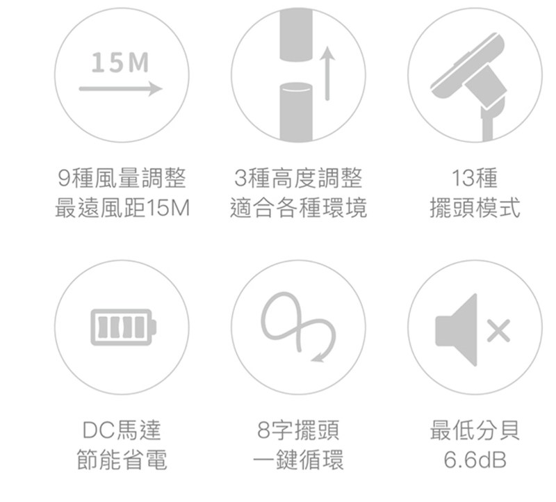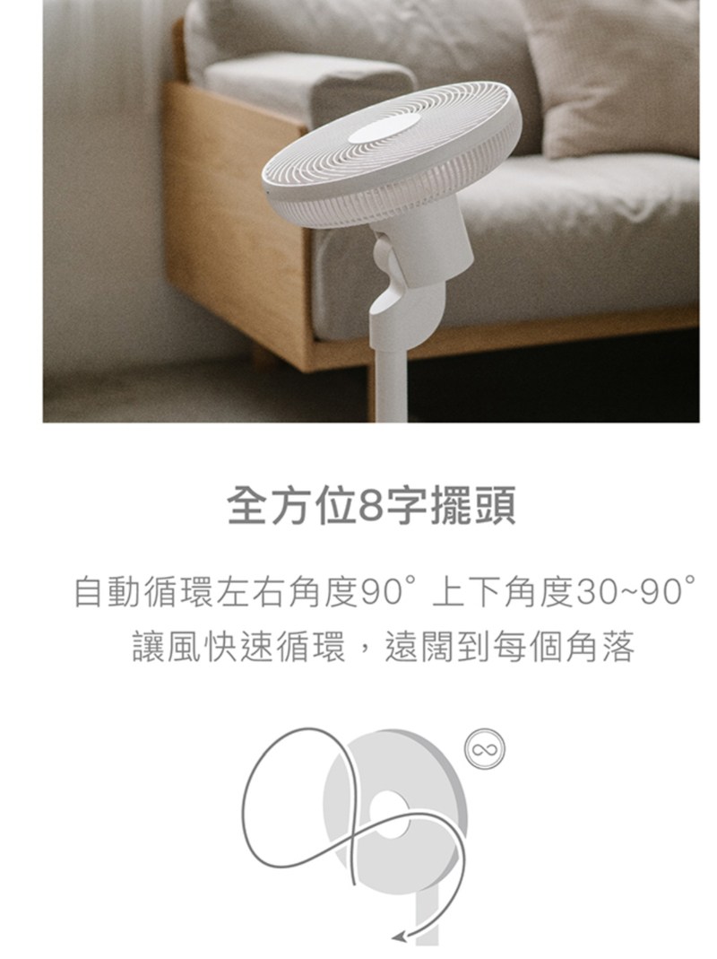 Solac DC行動風扇 6段風速 左右60°/往上45°/往下5°擺頭 260*H520mm SFT-F07W 白色