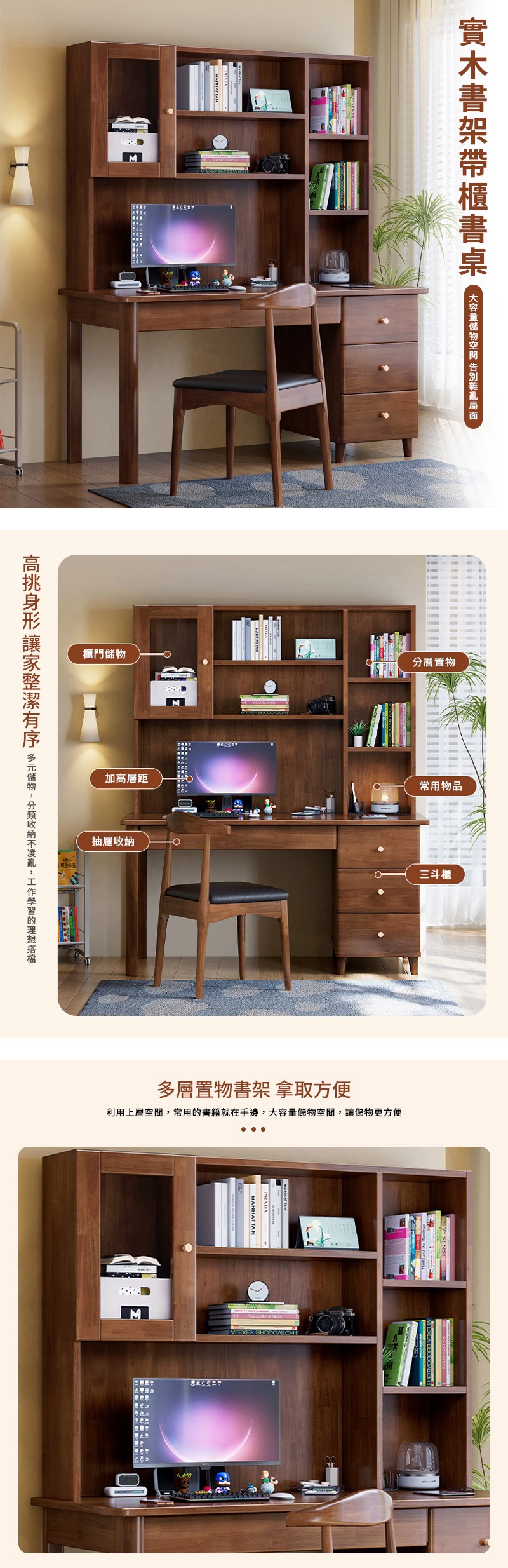 【新店熱銷】生家用書桌書架書櫃一體桌學習桌椅寫字桌子