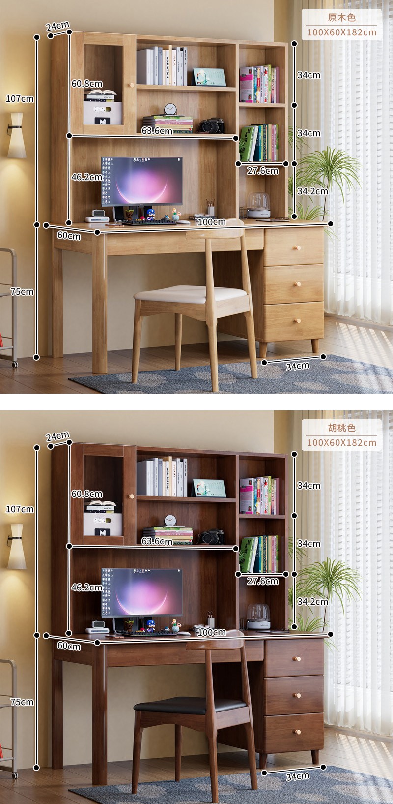 點我下載【HappyLife】實木書架帶櫃書桌 100公分 Y12102寶馬灰