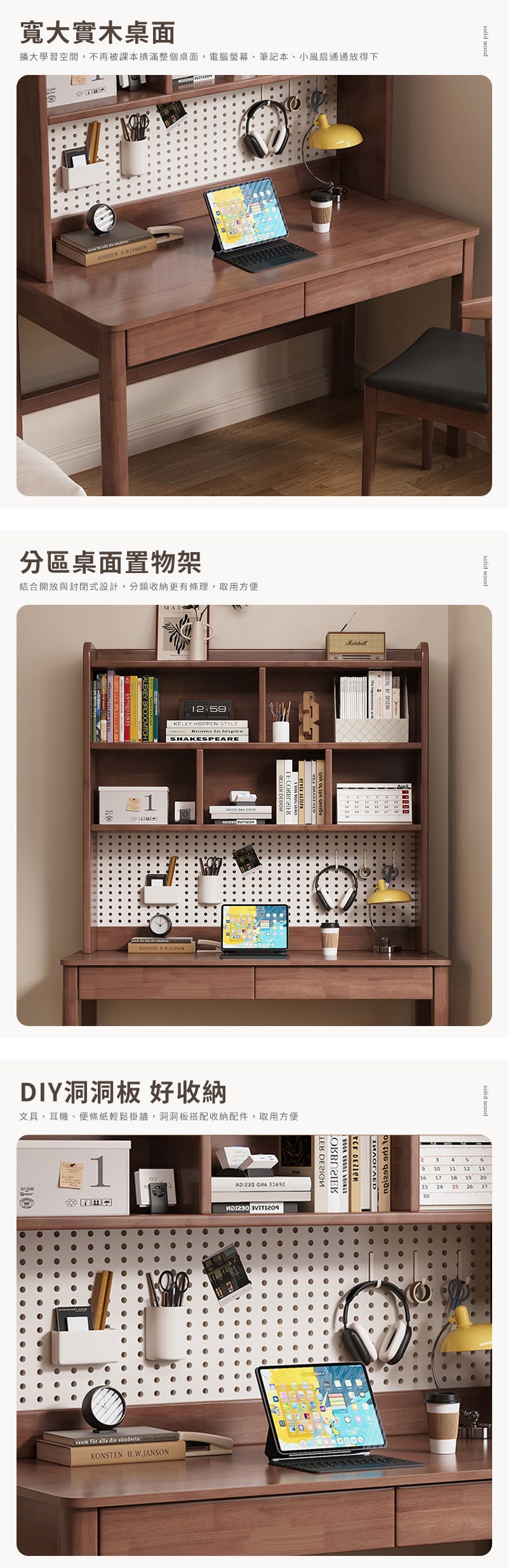 【HappyLife】實木洞洞板書架書桌 100公分 Y12111原木