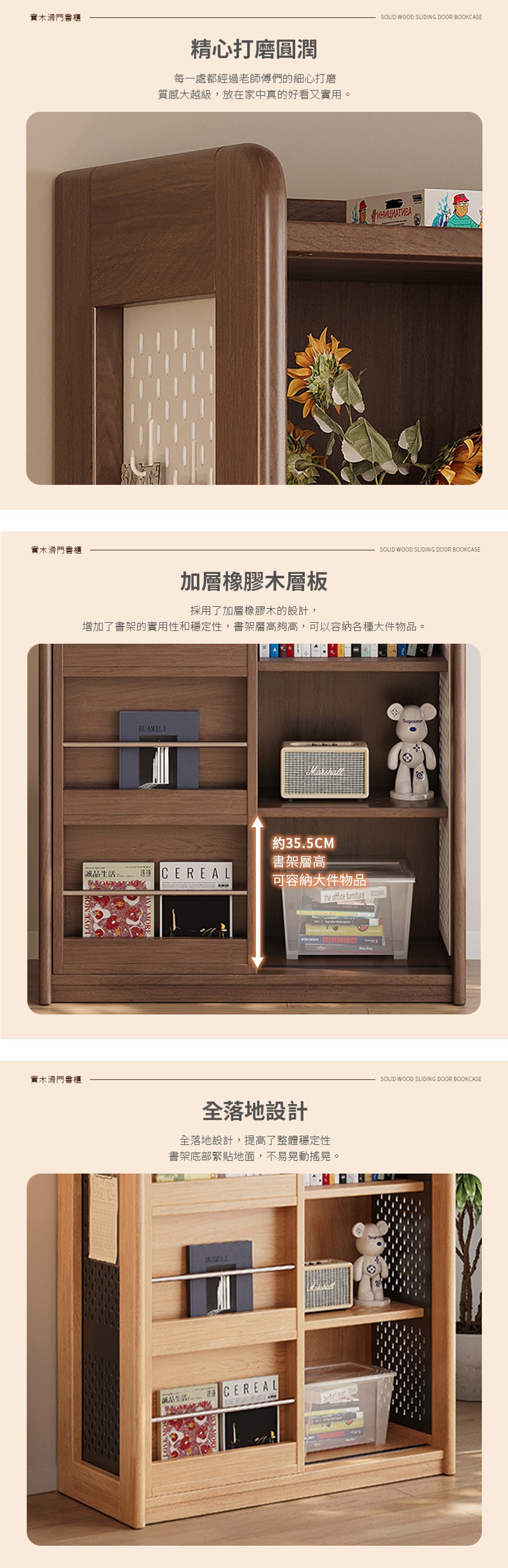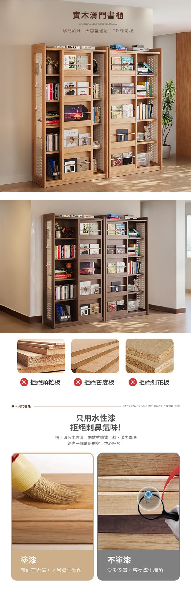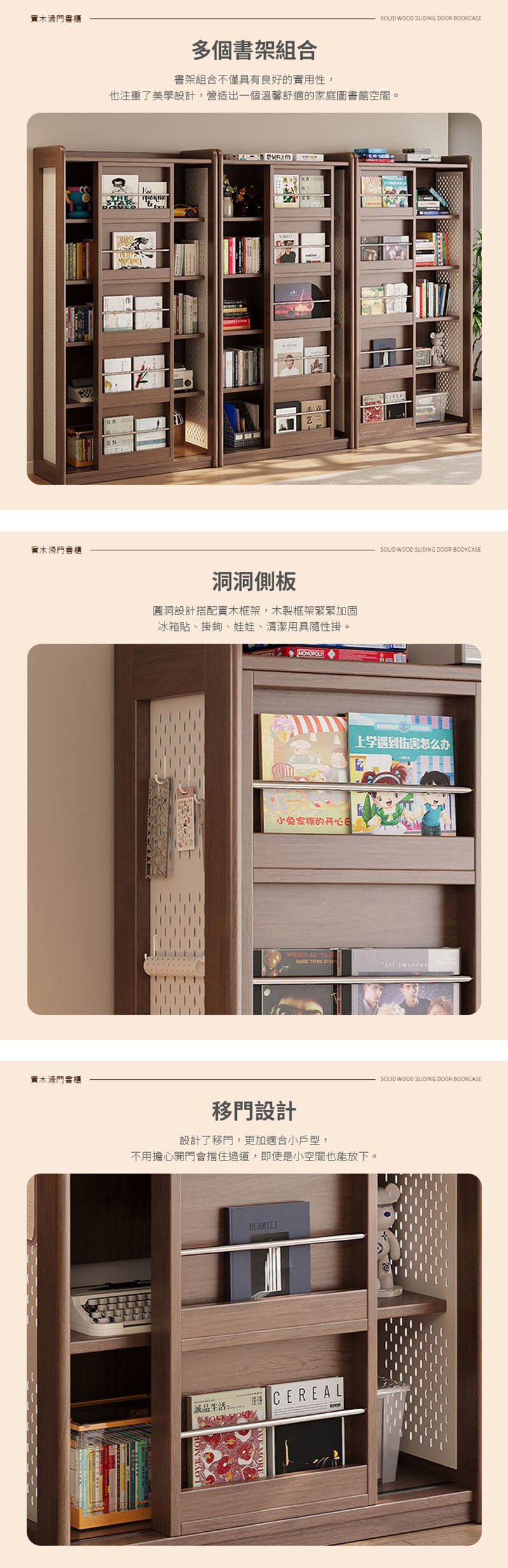 點我下載【HappyLife】實木滑門書櫃 90公分 Y12124原木
