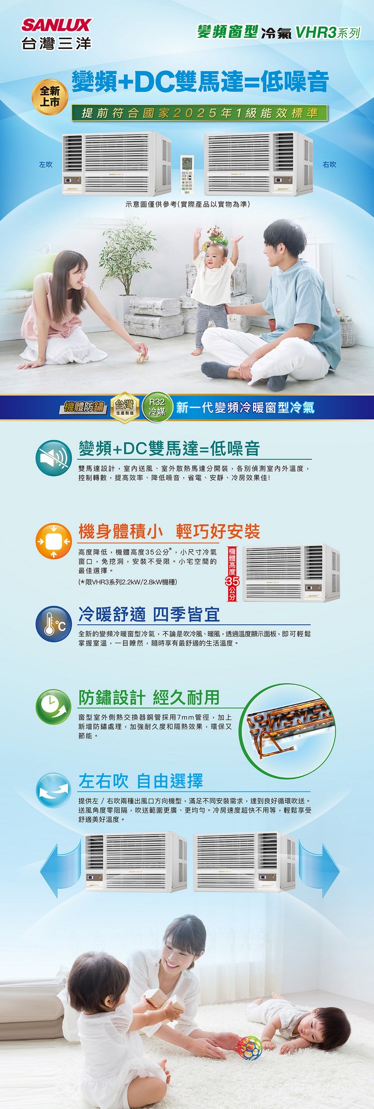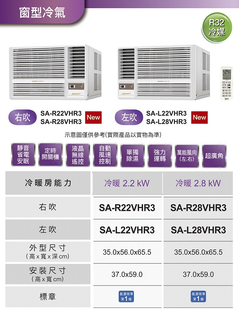 SANLUX台灣三洋2-3坪一級變頻冷暖右吹窗型冷氣 SA-R22VHR3~含基本安裝+舊機回收