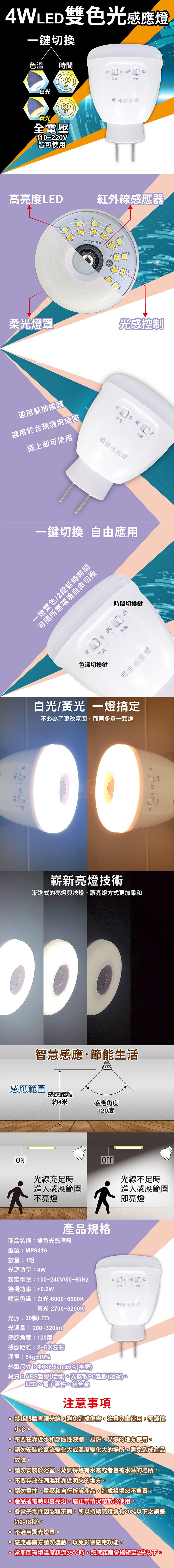 - 額定色溫:白光-6000~6500K;黃光-2700~3200K