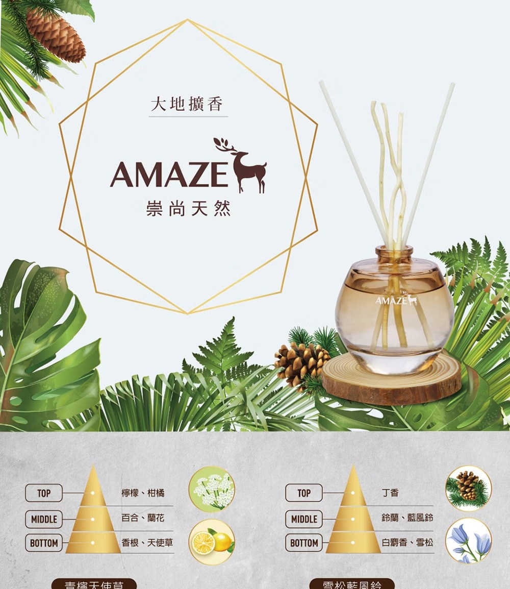 Amaze【整組】大地擴香(90ml) 雪松白鈴蘭甜橘玫瑰果青檸蝴蝶蘭 香竹 芳香劑 薰香器 精油