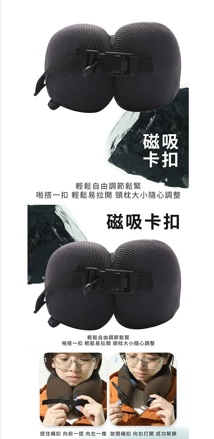 顆顆U型頸枕(EP2) 多功能輕量旅行枕 舒適透氣 飽滿不塌陷 多色可選 黑色