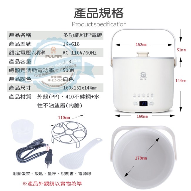 【JINKON 晶工牌】1.3L多功能料理電碗/美食鍋 JK-618