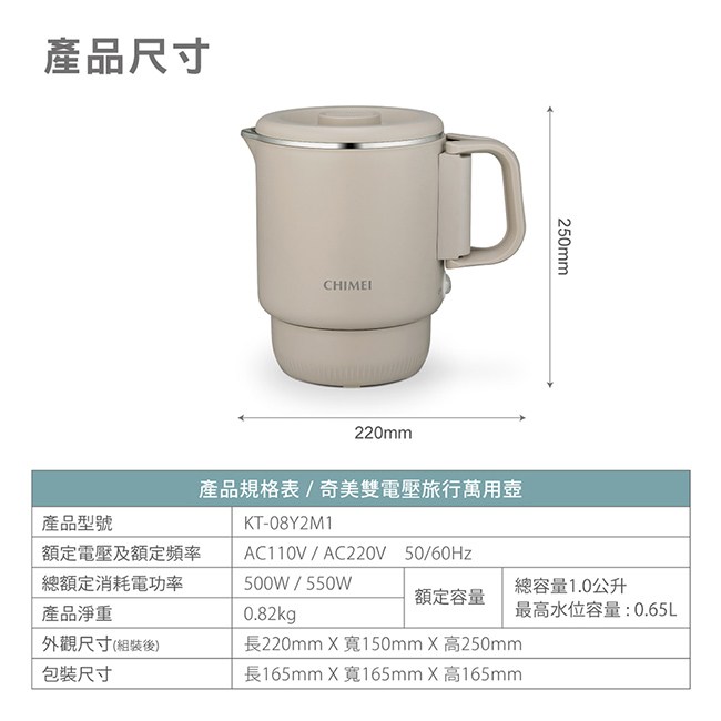 【CHIMEI奇美】雙電壓旅行萬用鍋/壺/美食鍋 KT-08Y2M1