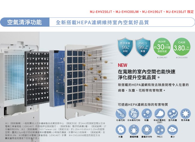 MITSUBISHI三菱 原廠MJ-EHV250JT/MJ-EHV200JW/MJ-EH190JT/MJ-EH150JT專用HEPA活性碳濾網 MJPR-EHJTFT-TW