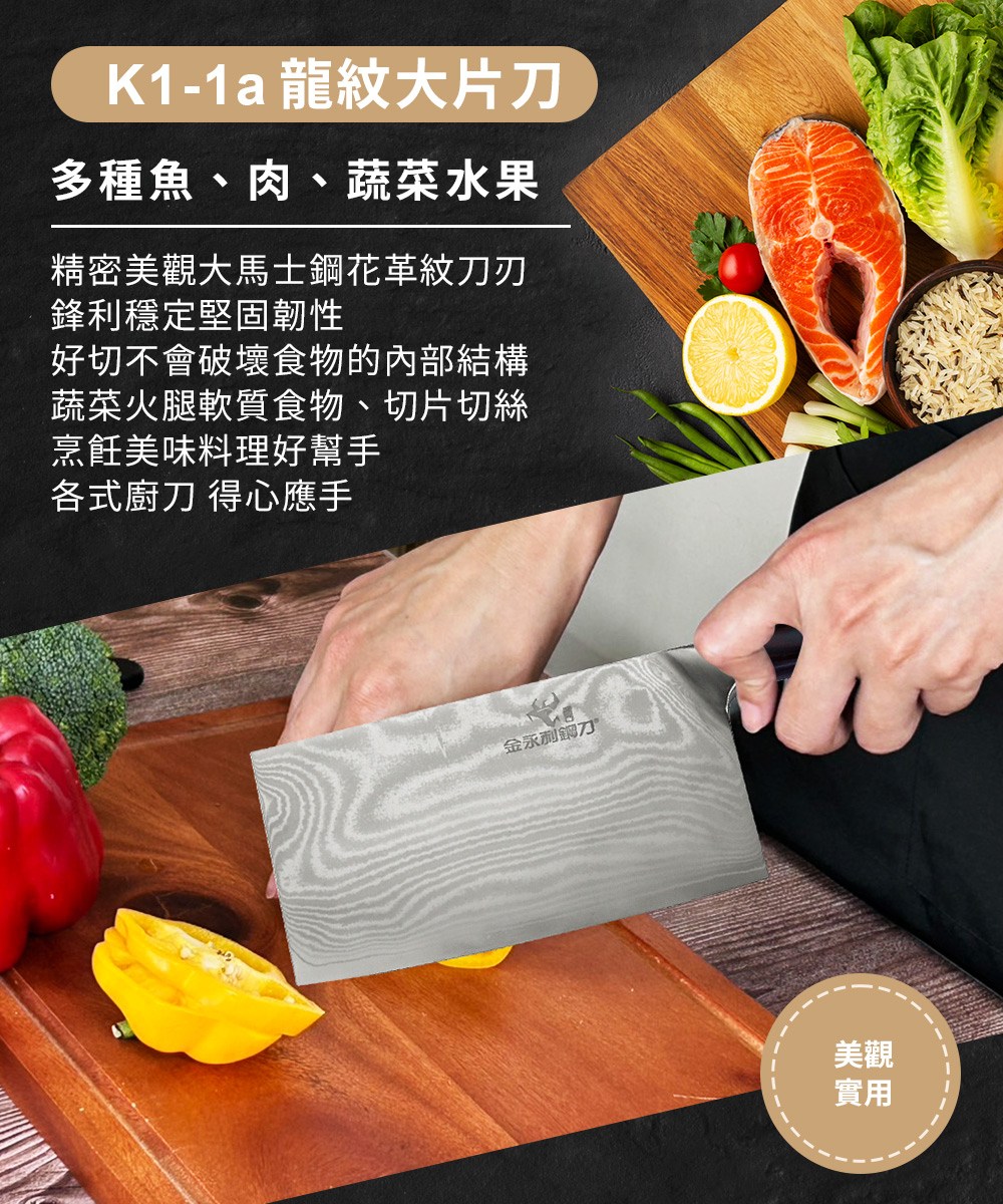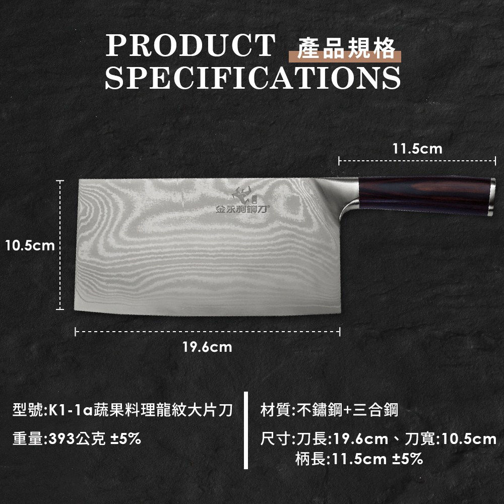【金永利鋼刀】龍紋系列蔬果料理大片刀(K1-1a)