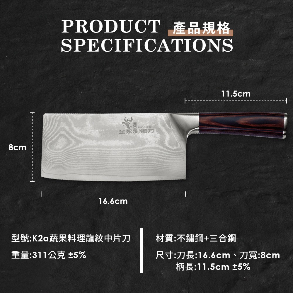 【金永利鋼刀】龍紋系列蔬果料理中片刀(K2a)