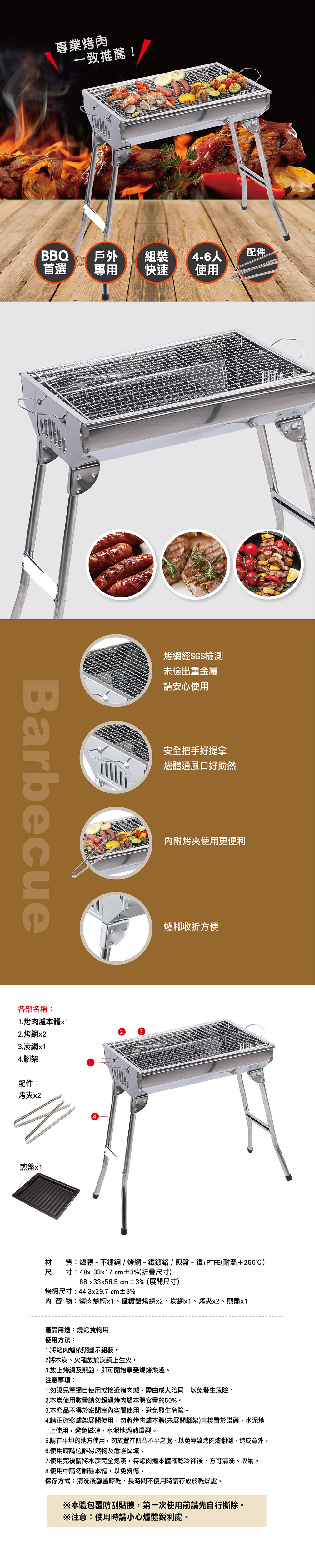 BARBECUE 行家 不銹鋼烤肉架 BH-460S 4~6人用 攜帶組裝收納方便 銀色 1個