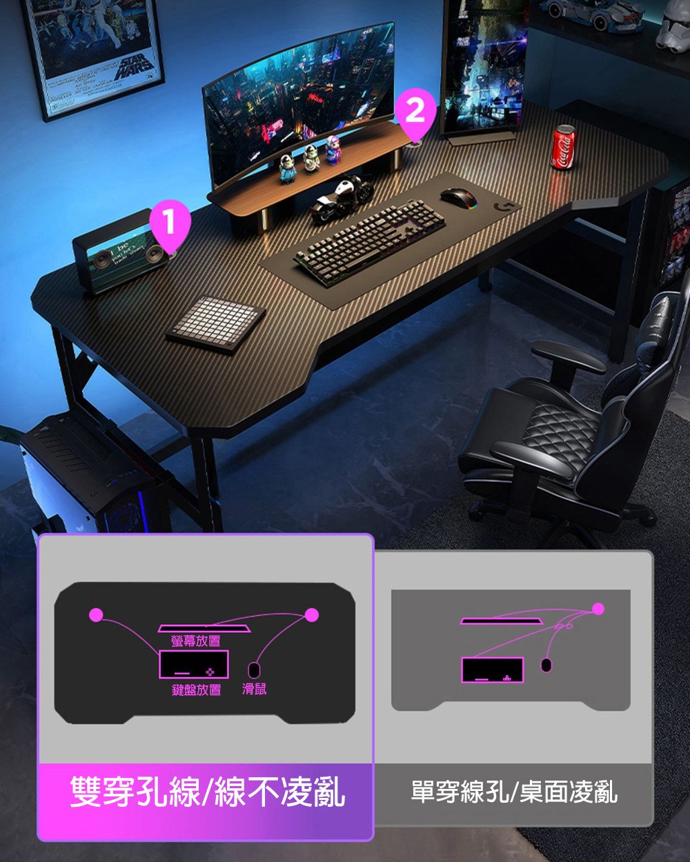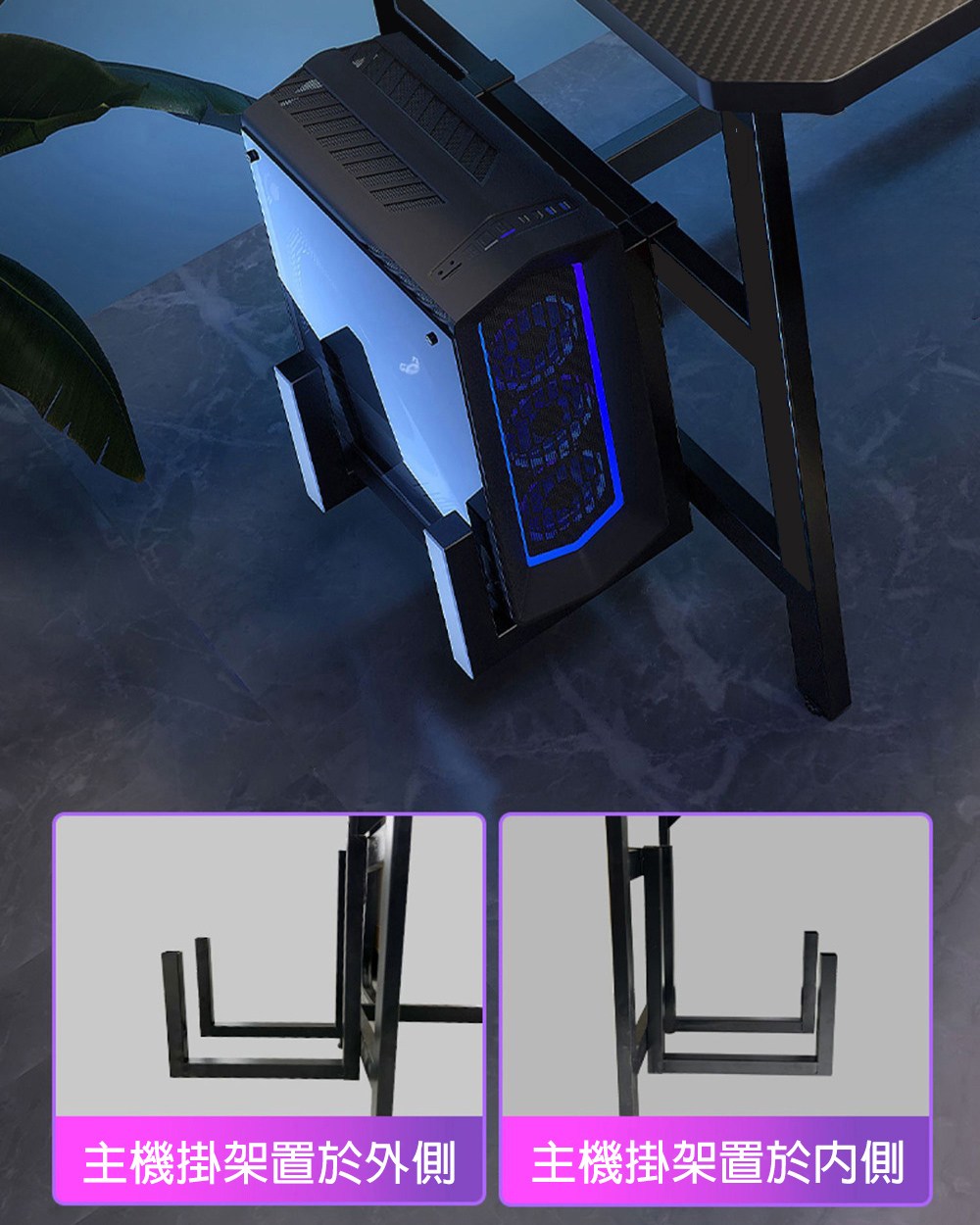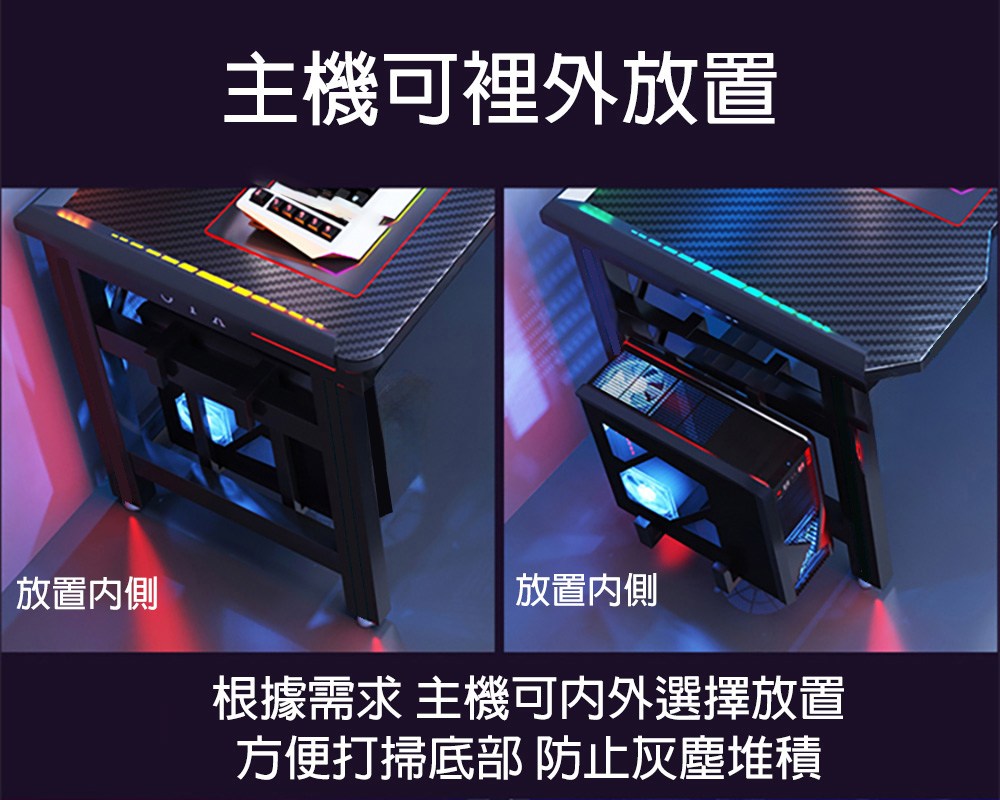 【居家生活Easy Buy】碳纖維桌面電競桌140CM-附主機懸掛架電競桌-140CM