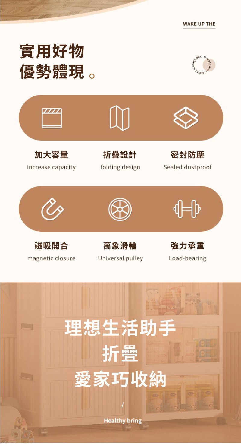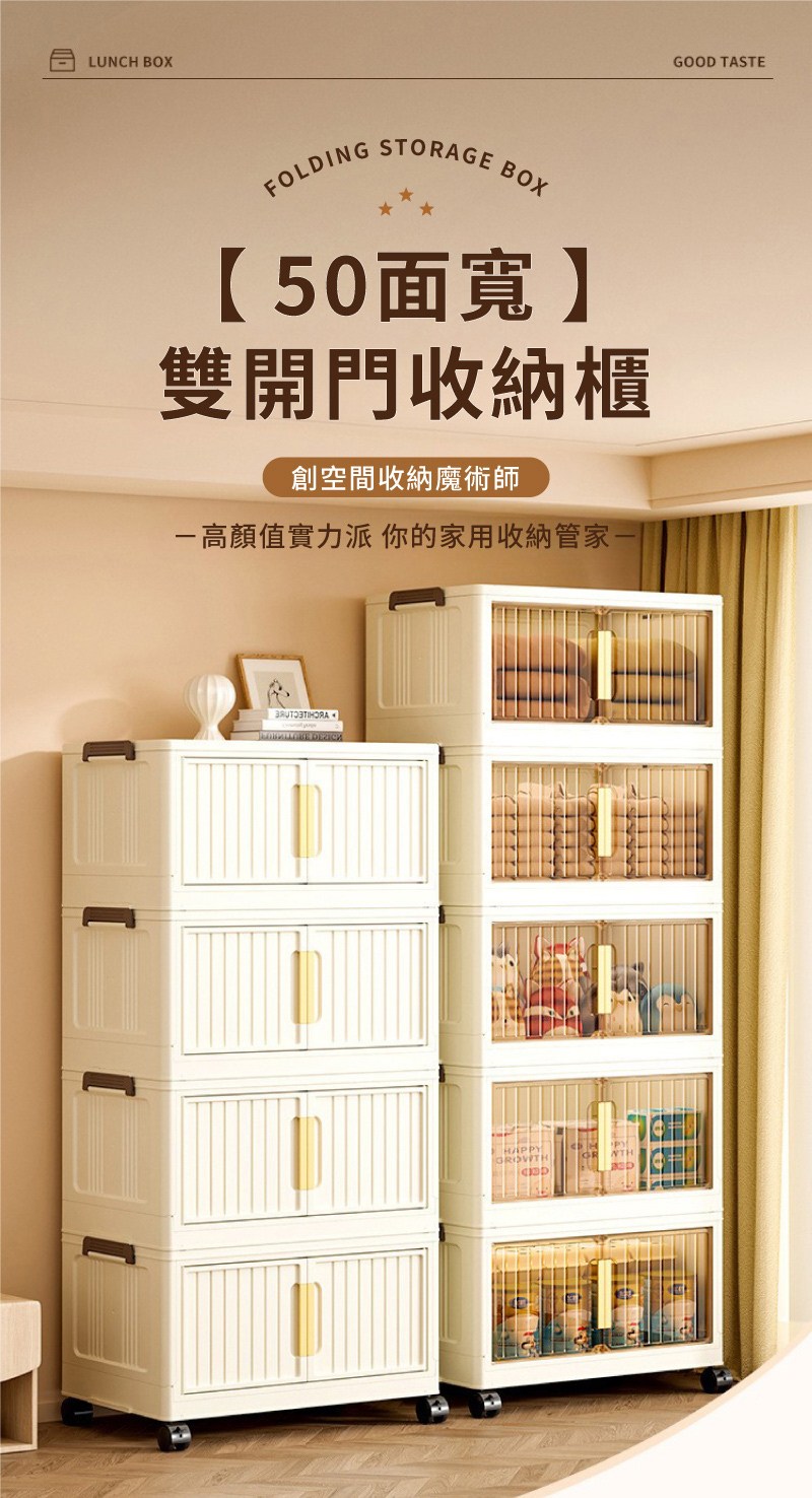 雙開門折疊磁吸收納櫃 PP+PS材質 透明色