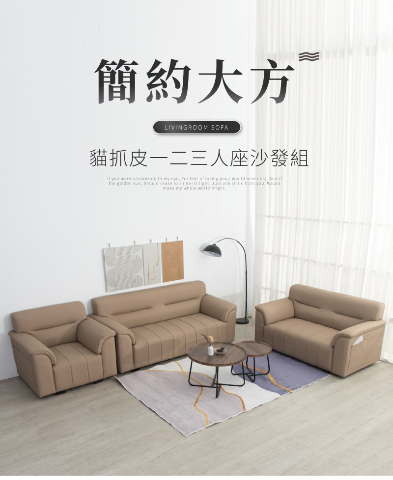 點我下載【IDEA】維迪包覆加深貓抓皮三人沙發/皮沙發(2色任選/雙邊收納袋)灰色