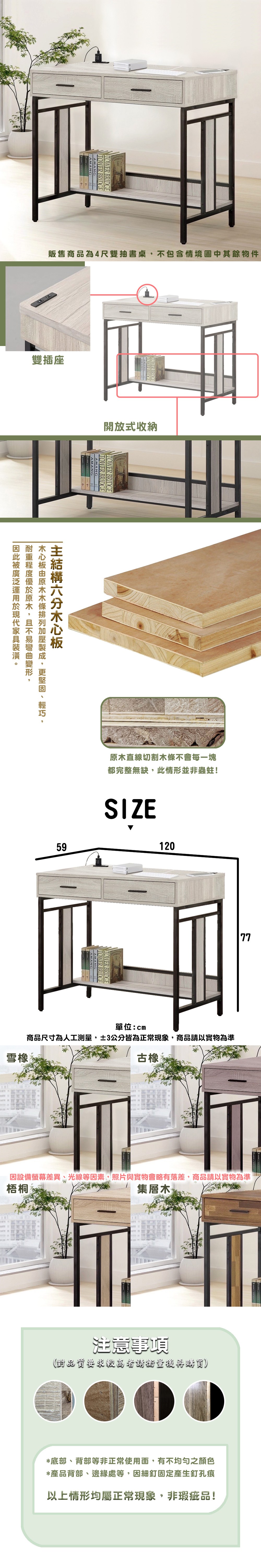 本木-洛馬 日式工業風4尺雙抽書桌集層