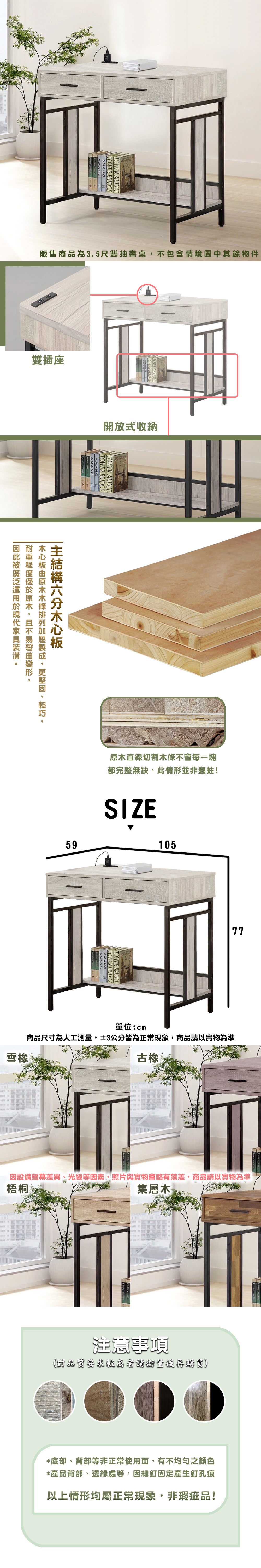 本木-洛馬 日式工業風3.5尺雙抽書桌梧桐