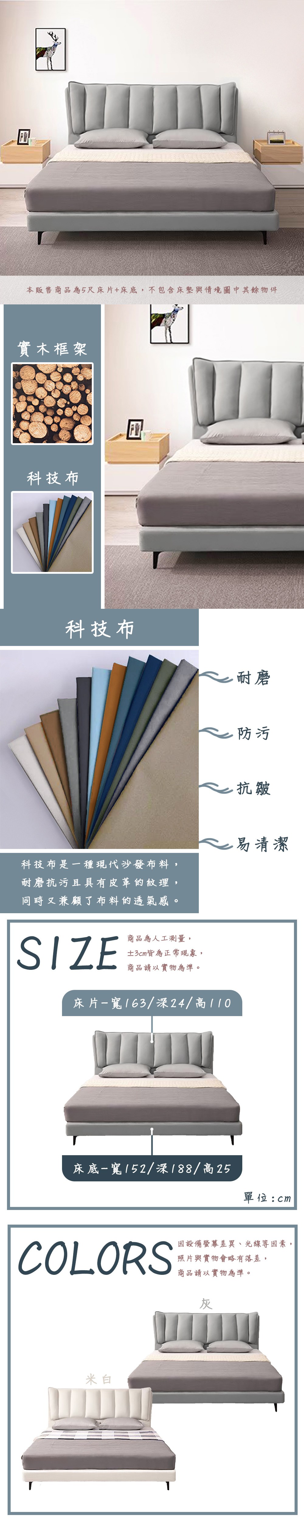 ASSARI-布拉格科技布房間組(床頭片+床底)-雙大6尺灰