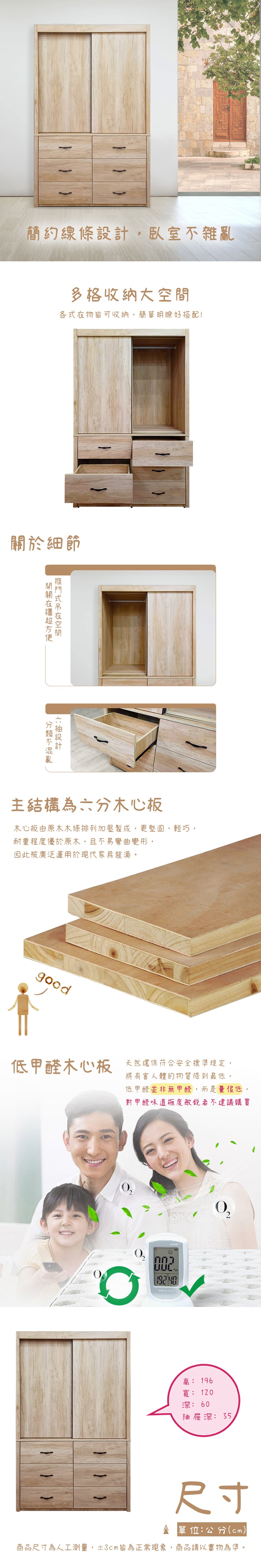 直人木業-TESS淺橡極簡風四抽滑門衣櫃120公分