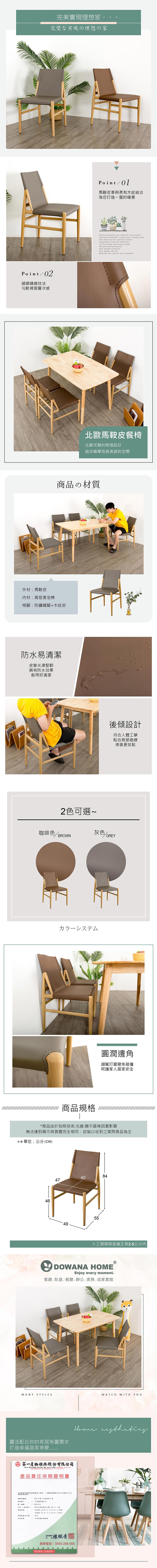 【多瓦娜】棠寶馬鞍皮餐椅-兩色(休閒椅/椅凳/椅子)灰色