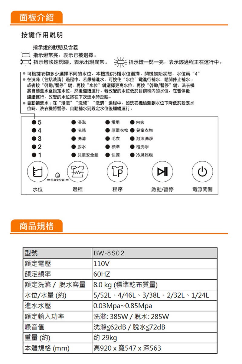【Kolin 歌林】BW-8S02-S 8KG 全自動單槽洗衣機
