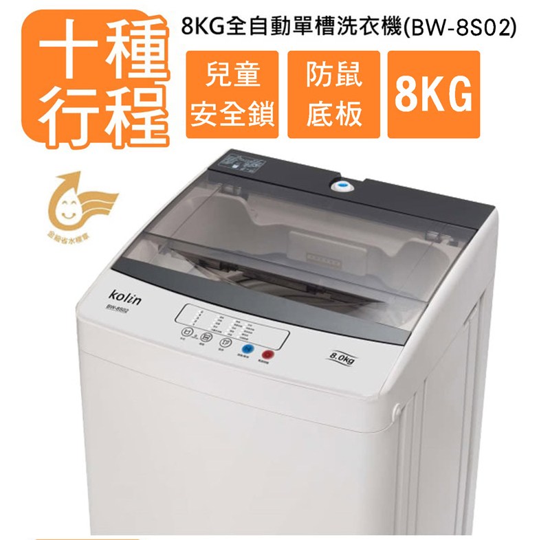 Kolin歌林 8KG全自動單槽洗衣機BW-8S02(基本運送至一樓)