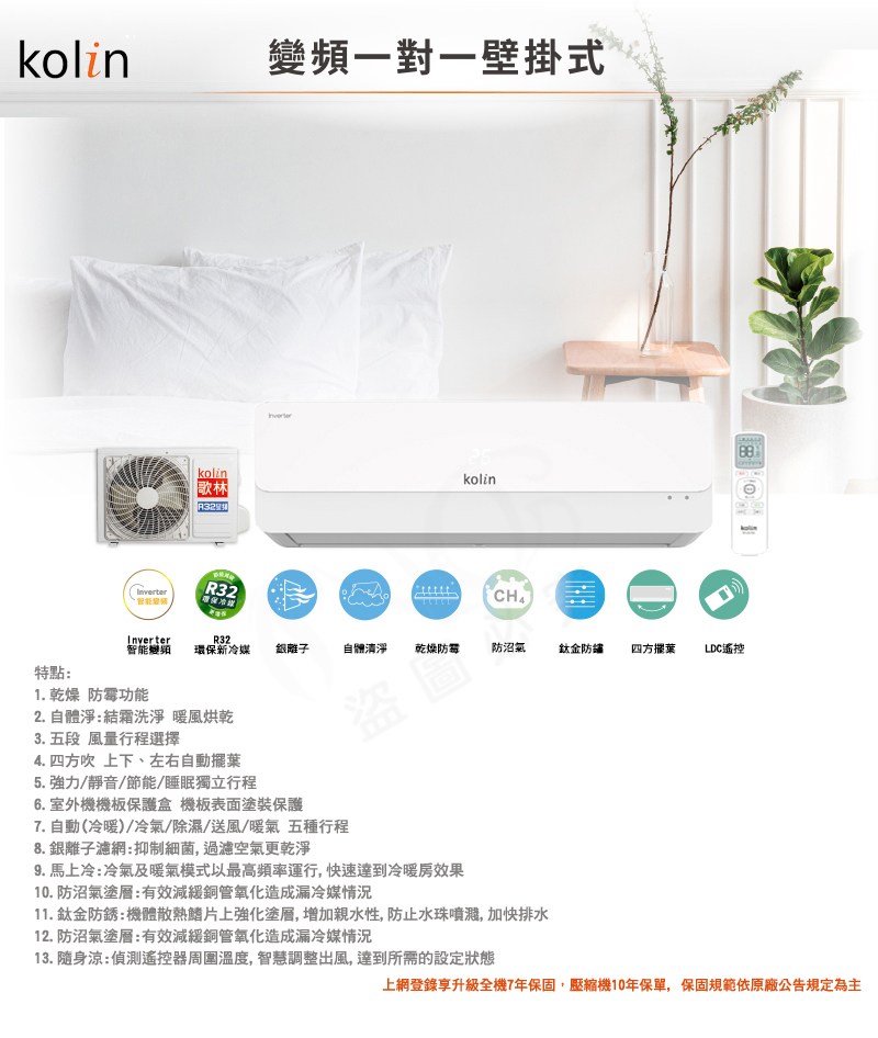 Kolin歌林 變頻冷暖分離式冷氣KDV-P85211R/KSA-P852DV11R~含基本安裝