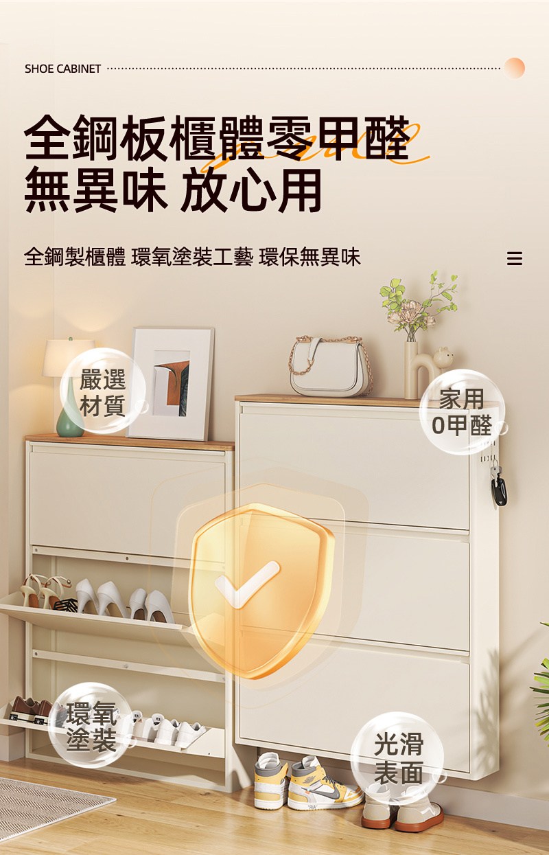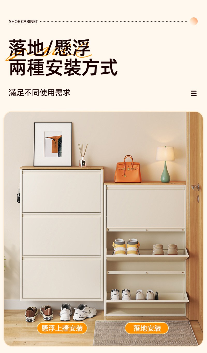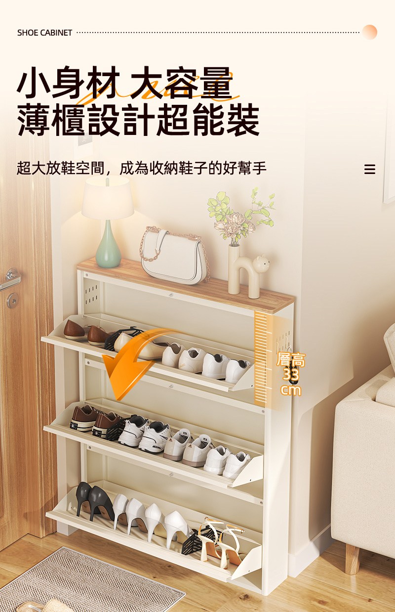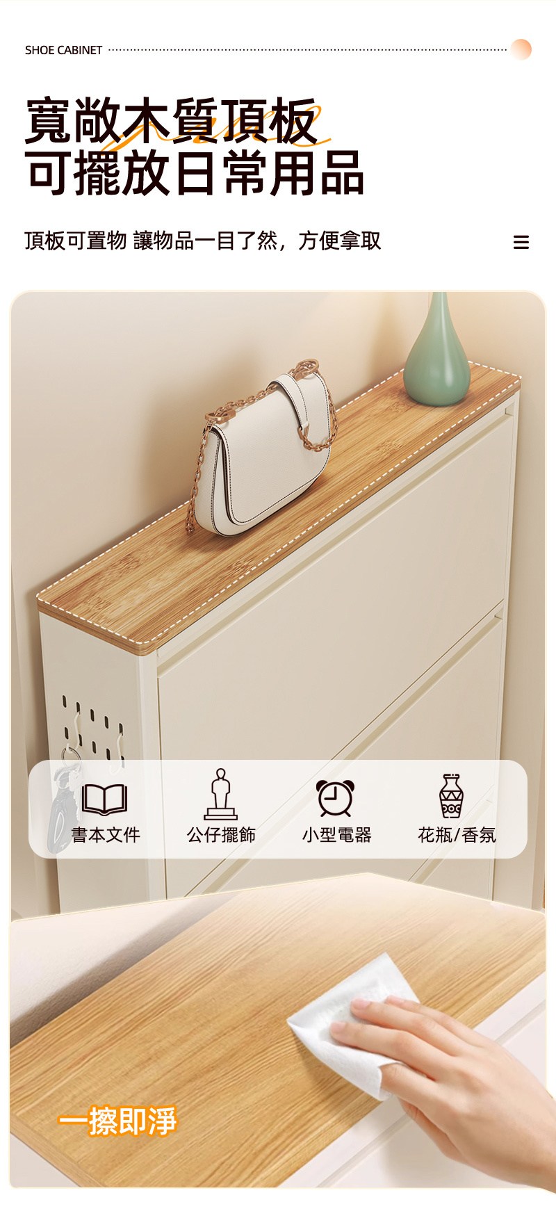 【慢慢家居】免安裝木頂超薄翻斗鋼製鞋櫃-80面寬 (三層鞋櫃 拉門鞋櫃 收納鞋櫃 鞋架)日式翻斗鞋櫃-80cm(三層)