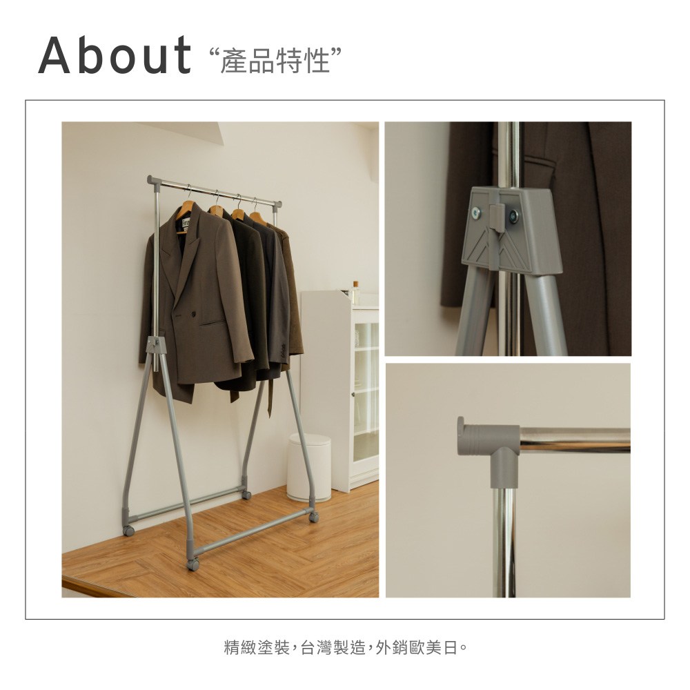 日月鉄工所 外掛衣架 鋁合金材質 碳鋼支撐柱 簡約時尚 高115 x 深37 x 寬80cm 1個