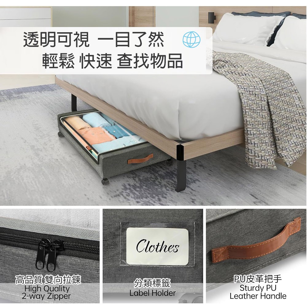 日本FOREVER 雙開式棉被收納箱/大容量透明窗衣物儲存箱3入組66L(50*40*33CM)