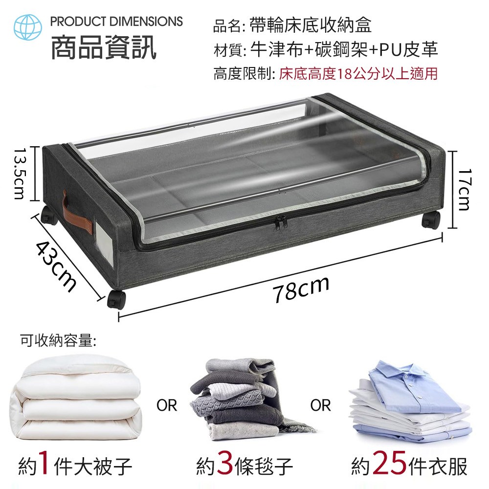 【dayneeds】高蓋-可摺疊收納箱搭移動萬象輪 兩色可選黑色