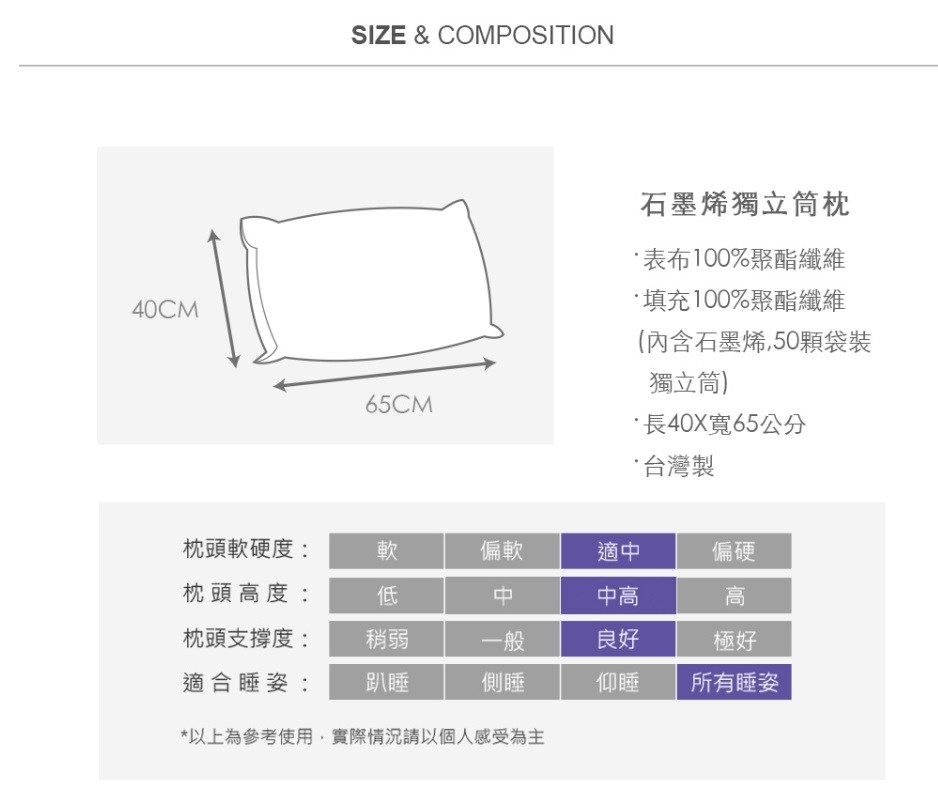 LoveCity 寢城之戀 石墨烯黑科技 飯店級透氣舒柔釋壓枕 45 x 75cm 1個 紫灰色
