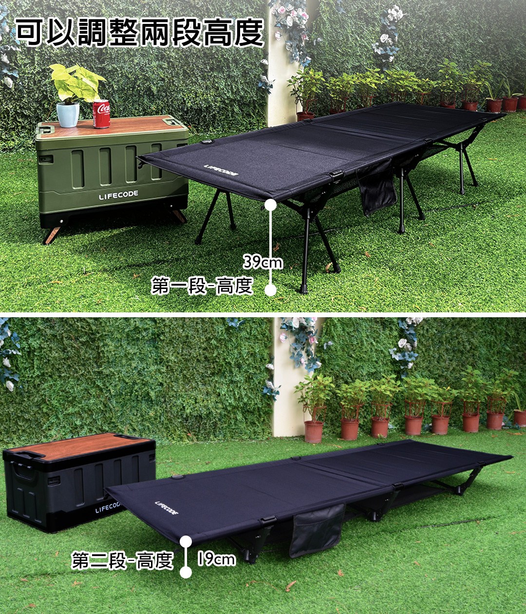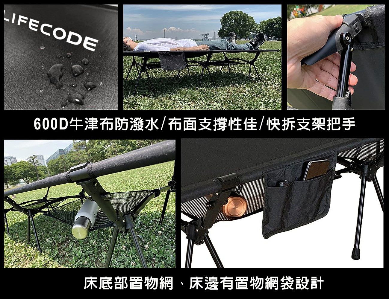 【LIFECODE】鋁合金行軍床/折疊床(附置物網+手機袋+外袋)