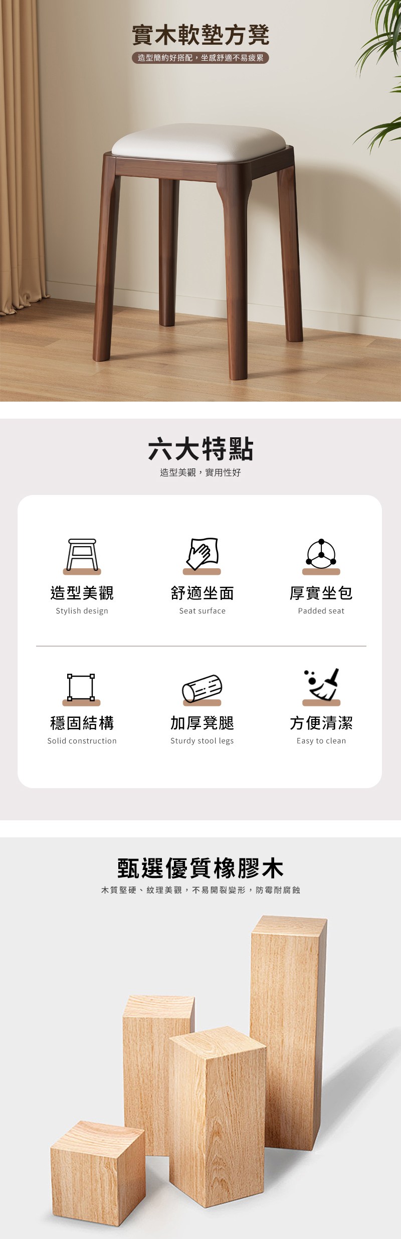 秘寶在這【HappyLife】實木軟墊方凳 Y12306胡桃