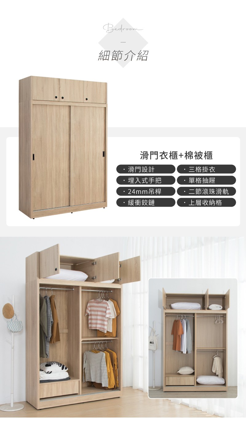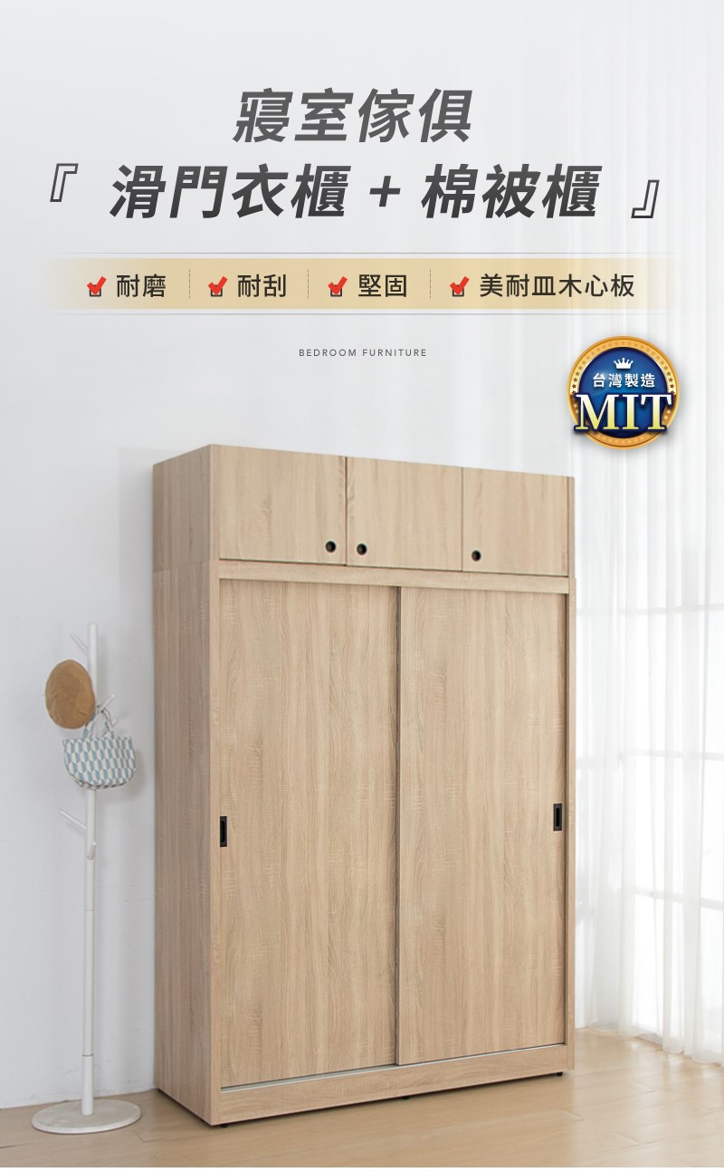 點我下載【IDEA】MIT凡賽4X6滑門收納木質衣櫃+棉被櫃/衣櫥/組合櫃(3色任選)英倫核桃