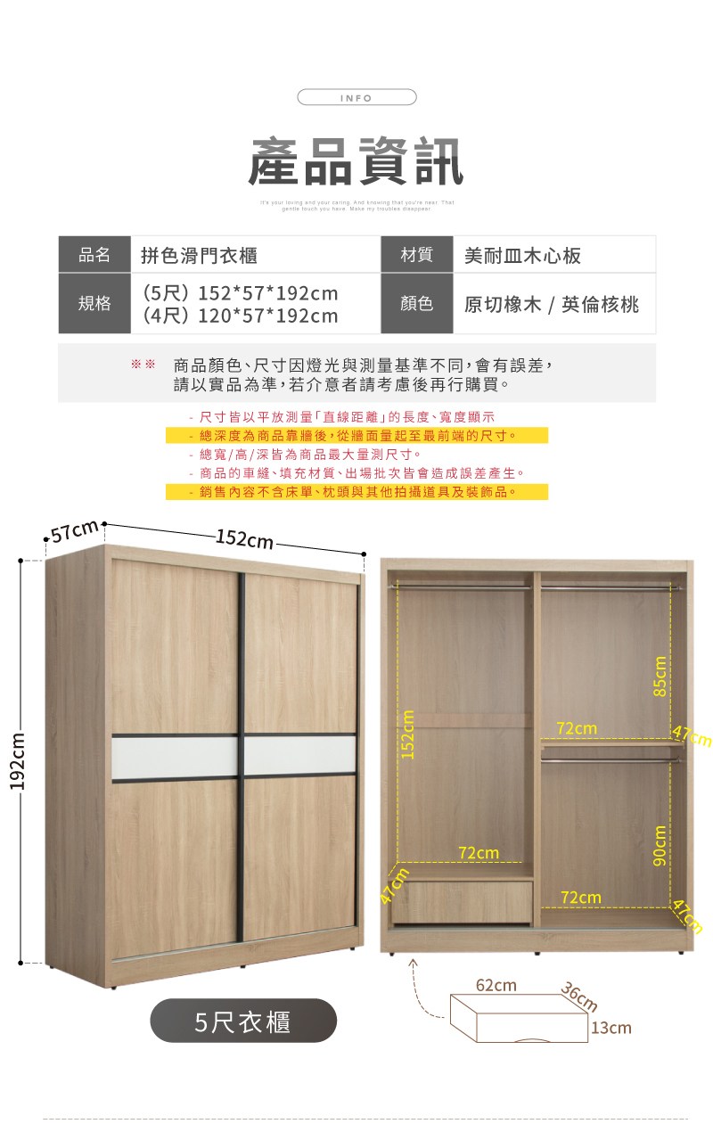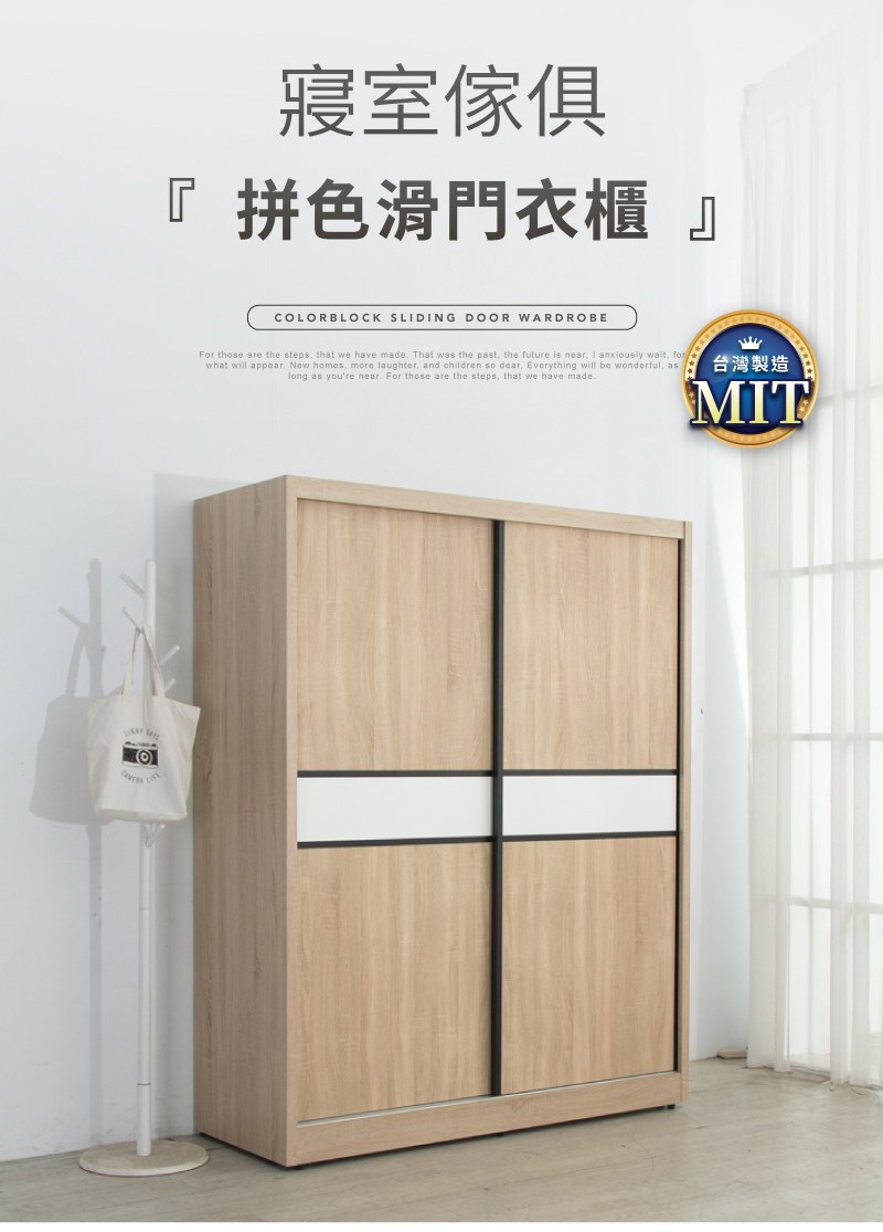 【IDEA】MIT5X7滑門拚色收納木質衣櫃/衣櫥/滑門衣櫃(2色任選/免組裝)原切橡木