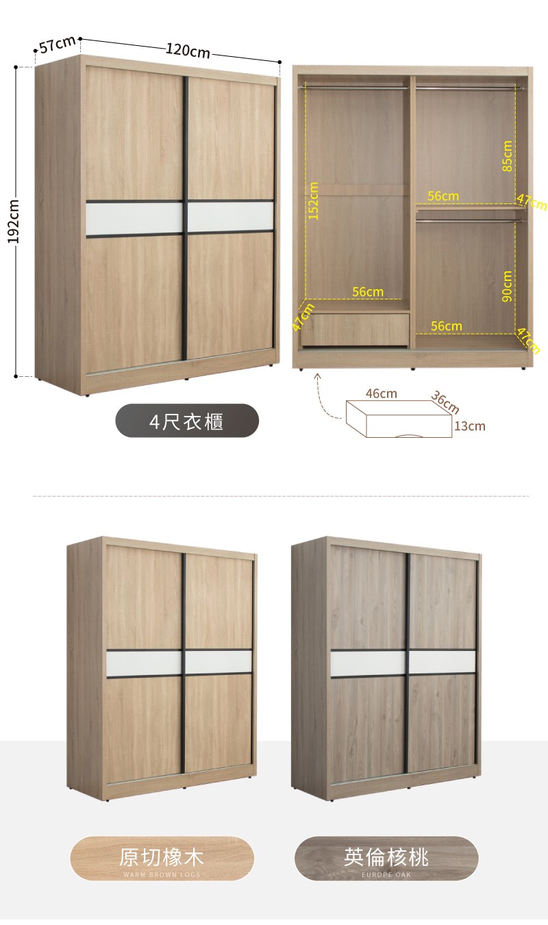 【IDEA】森特4X7尺木心板滑門衣櫃+棉被櫃/衣櫥/組合櫃(2色任選/免組裝)原切橡木