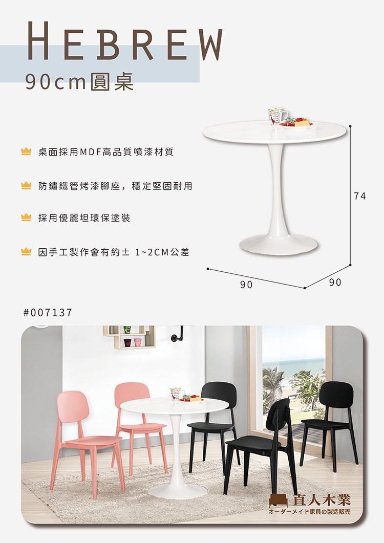 MH家居 韓系圓形餐桌 4人 白色 80cm