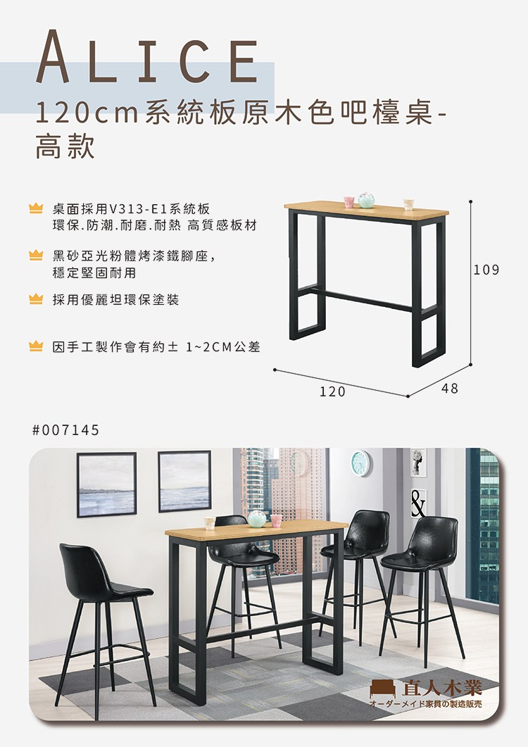 現代簡約 4尺 高版 吧台桌 寬120|高腳餐桌|北歐風 工業風高腳桌(仿大理石 / 木紋色)TBB037