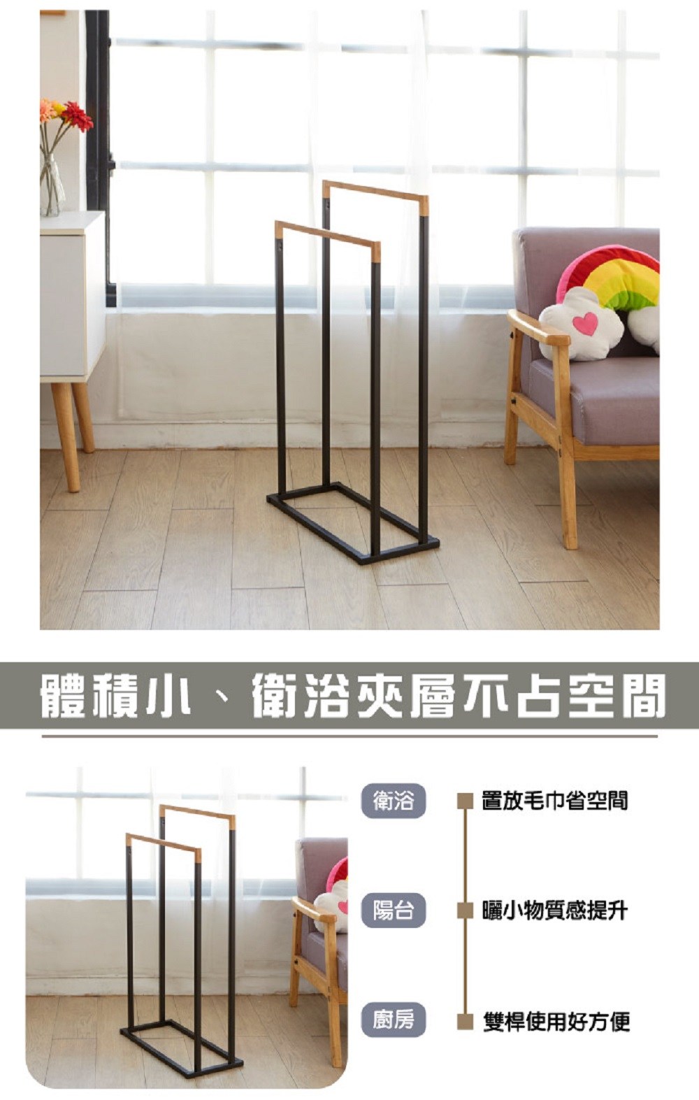 Light 太空鋁無痕單桿浴室毛巾置物架 快速安裝 不傷牆面 30cm 銀白色 1個