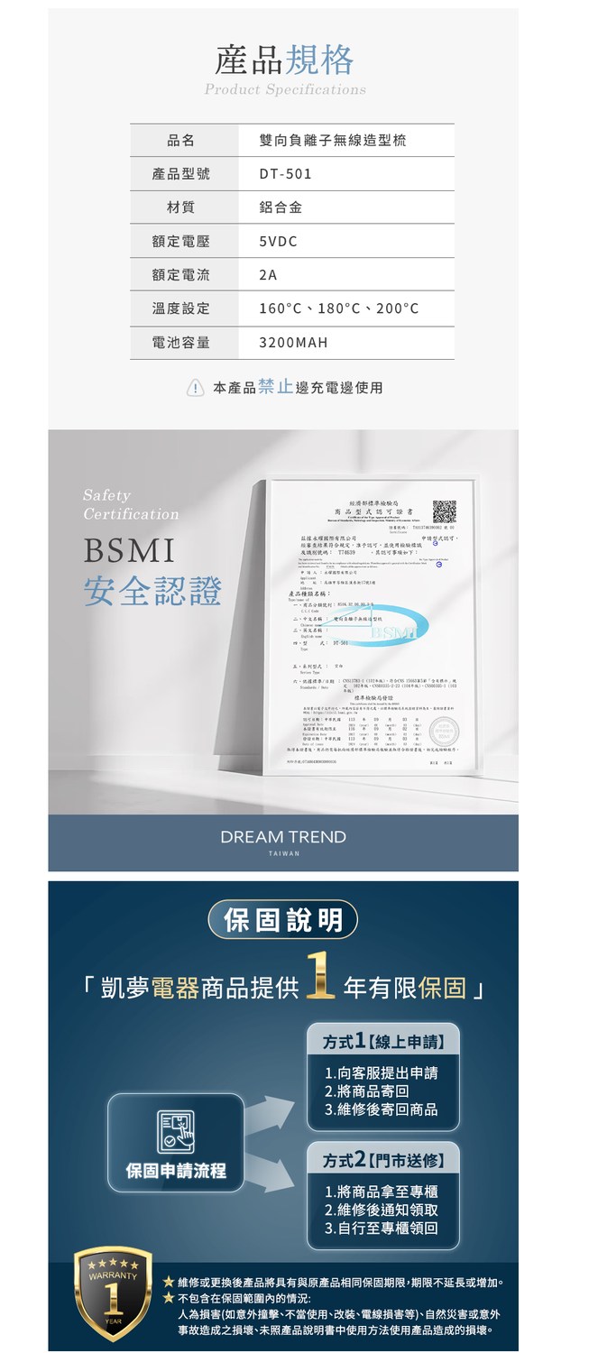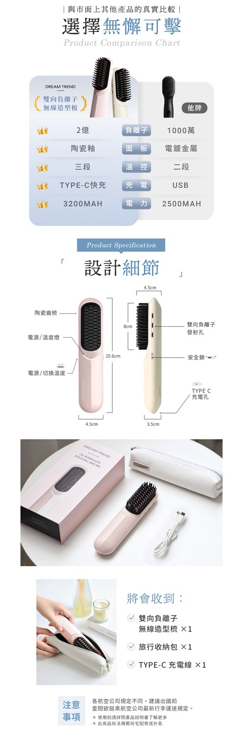 DREAM TREND 凱夢 雙向負離子無線造型梳 AC003
