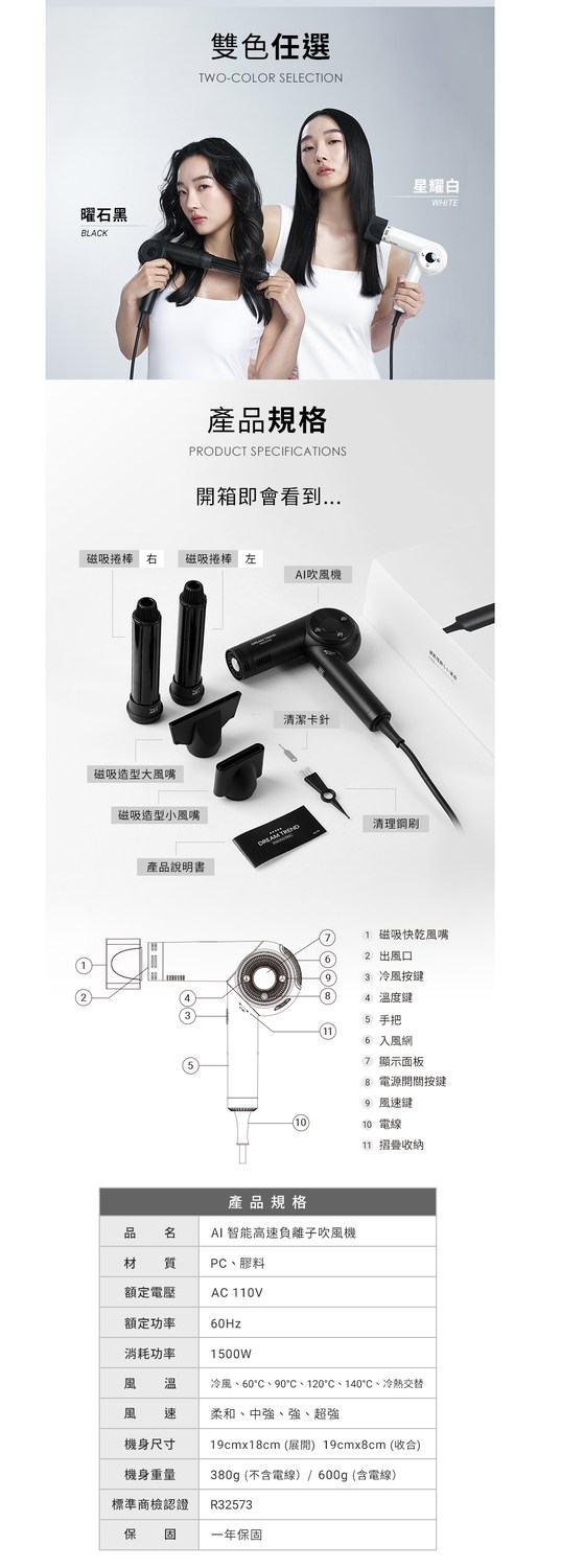 DREAM TREND 凱夢 AI智能高速負離子吹風機 AE003星耀白