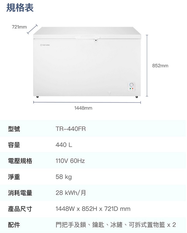 TATUNG大同440公升臥室冷凍櫃 TR-440FR~含拆箱定位+舊機回收